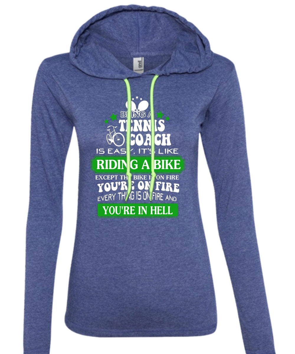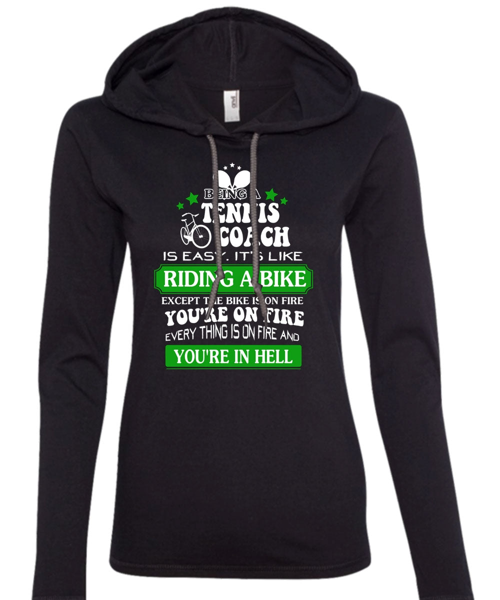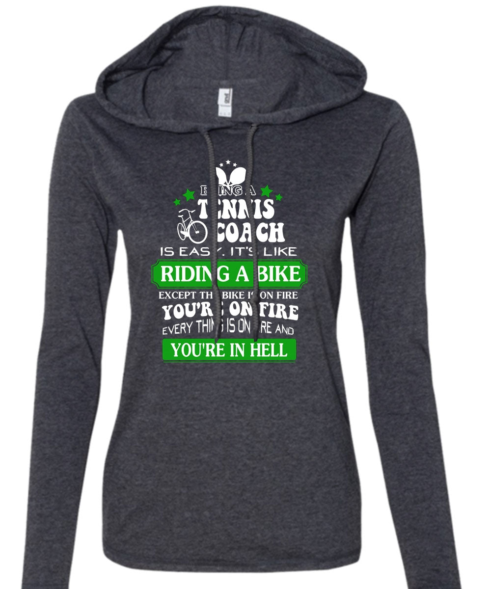Being A Tennis Coach Is Easy T Shirt, Life T Shirt, It's Like Riding A Bike T Shirt (Anvil Ladies Ringspun Hooded)
