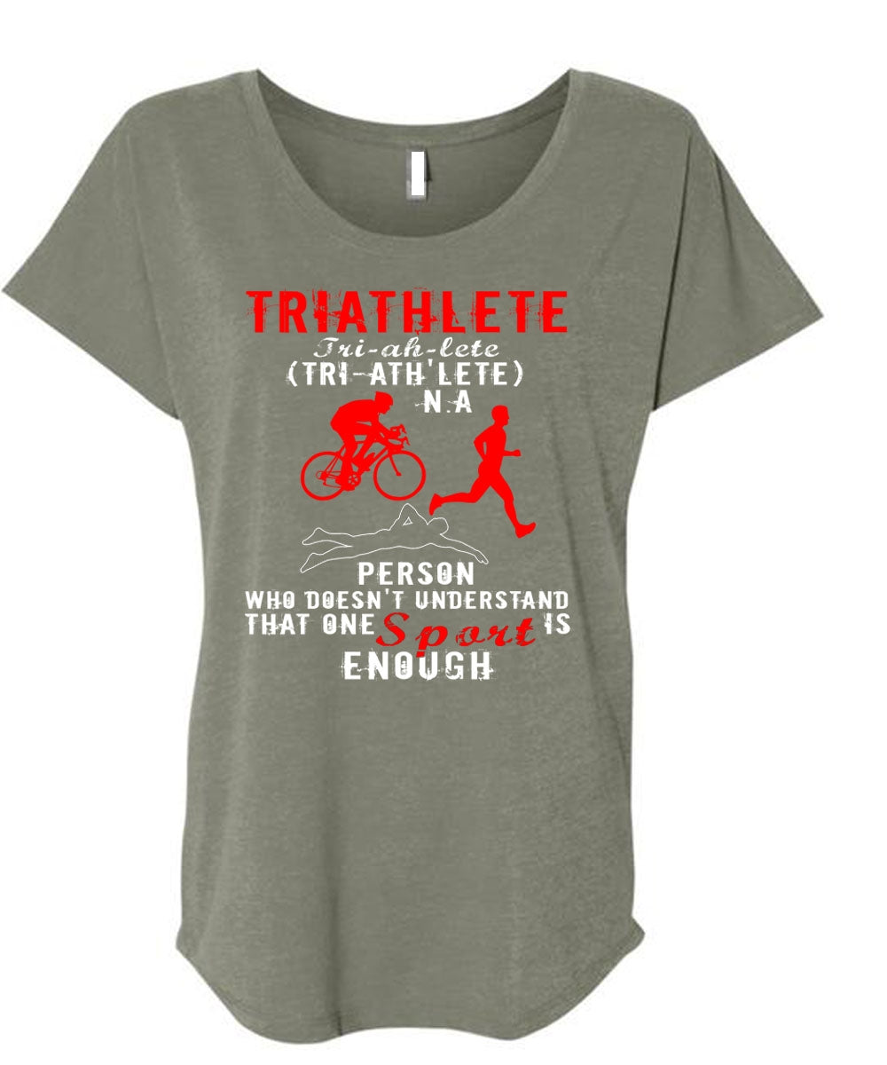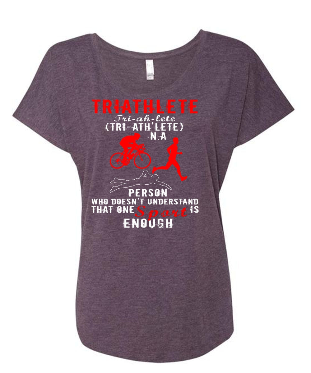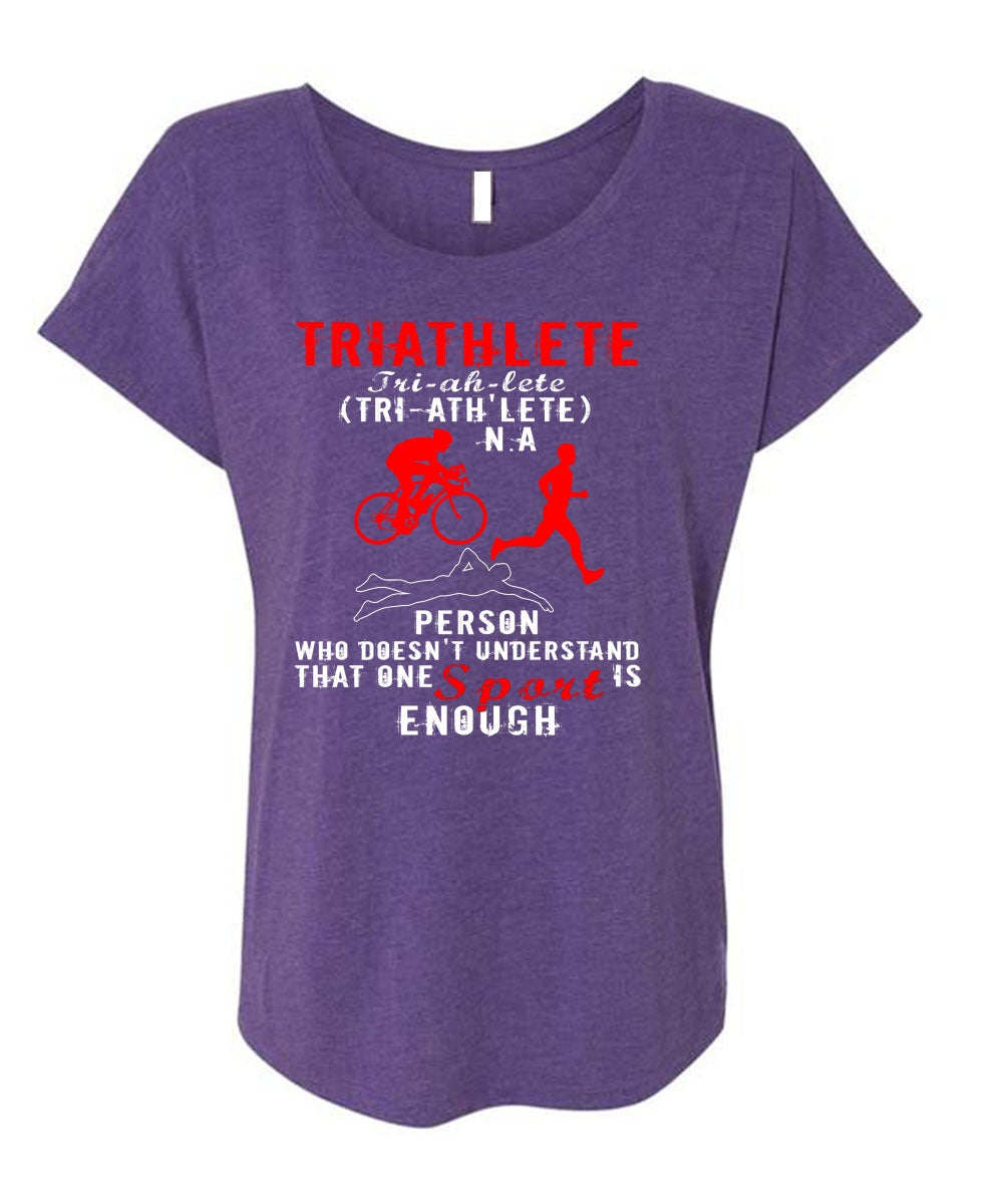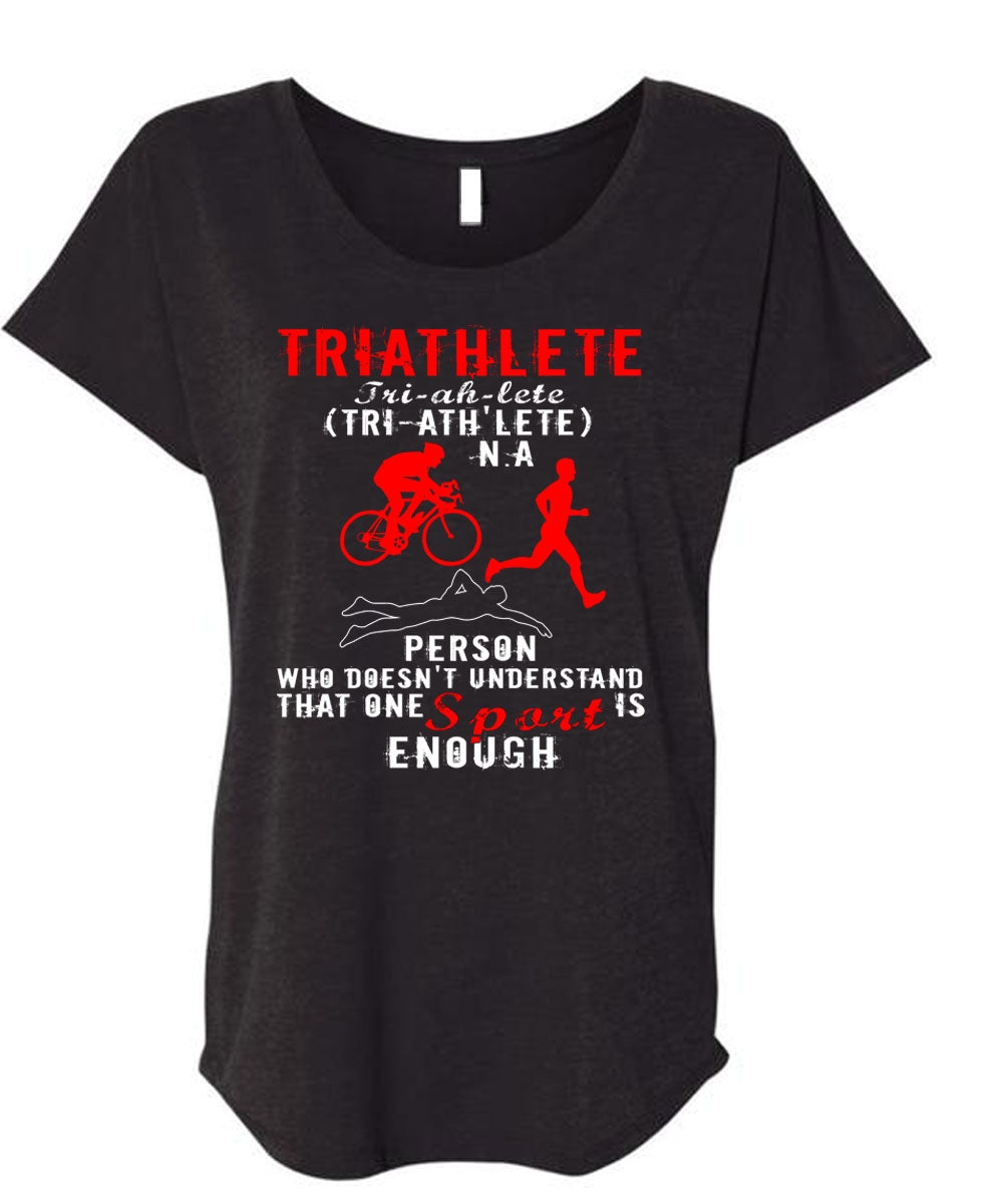 Being A Triathlete T Shirt, One Sport Is Enough T Shirt, Cool Shirt (Ladies' Triblend Dolman Sleeve)