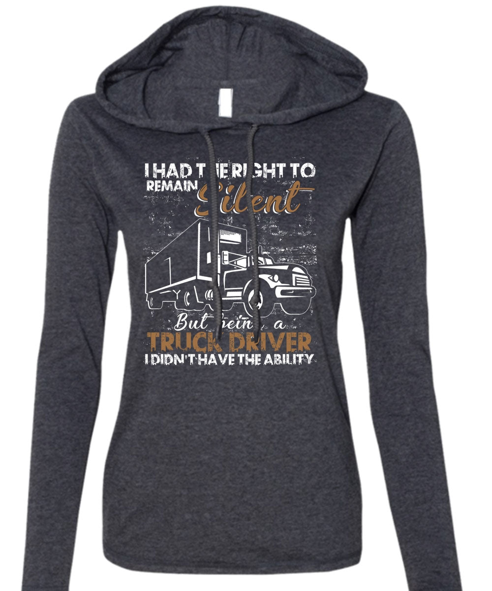 Being A Truck Driver T Shirt, I Had The Right To Remain Silent T Shirt (Anvil Ladies Ringspun Hooded)