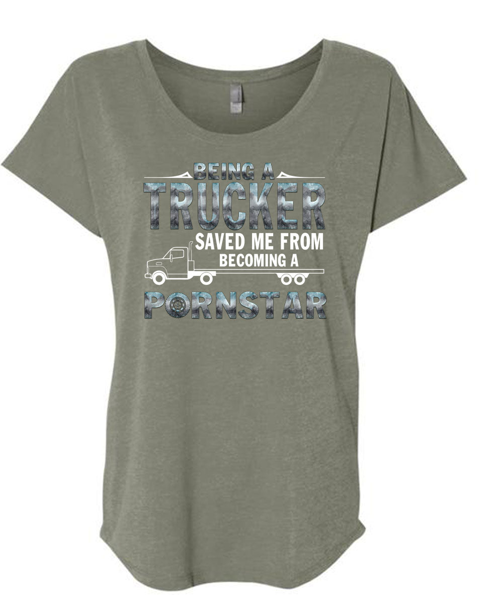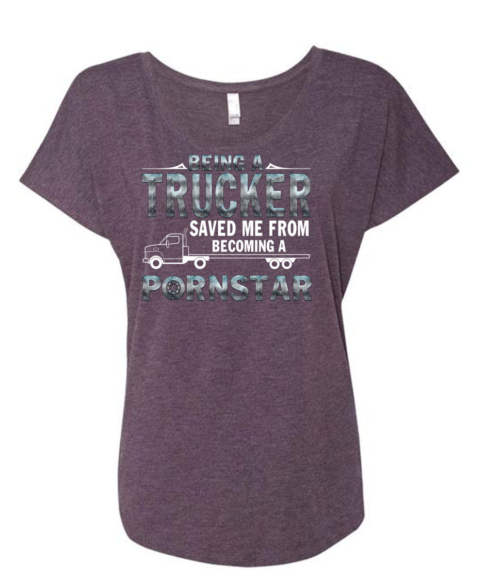 Being A Trucker T Shirt, I Love Trucking T Shirt, Cool Shirt (Ladies' Triblend Dolman Sleeve)