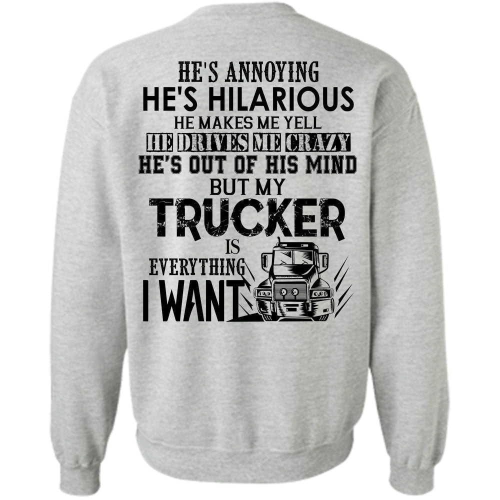 Being A Trucker T Shirt, My Trucker Is Everything I Want Sweatshirt