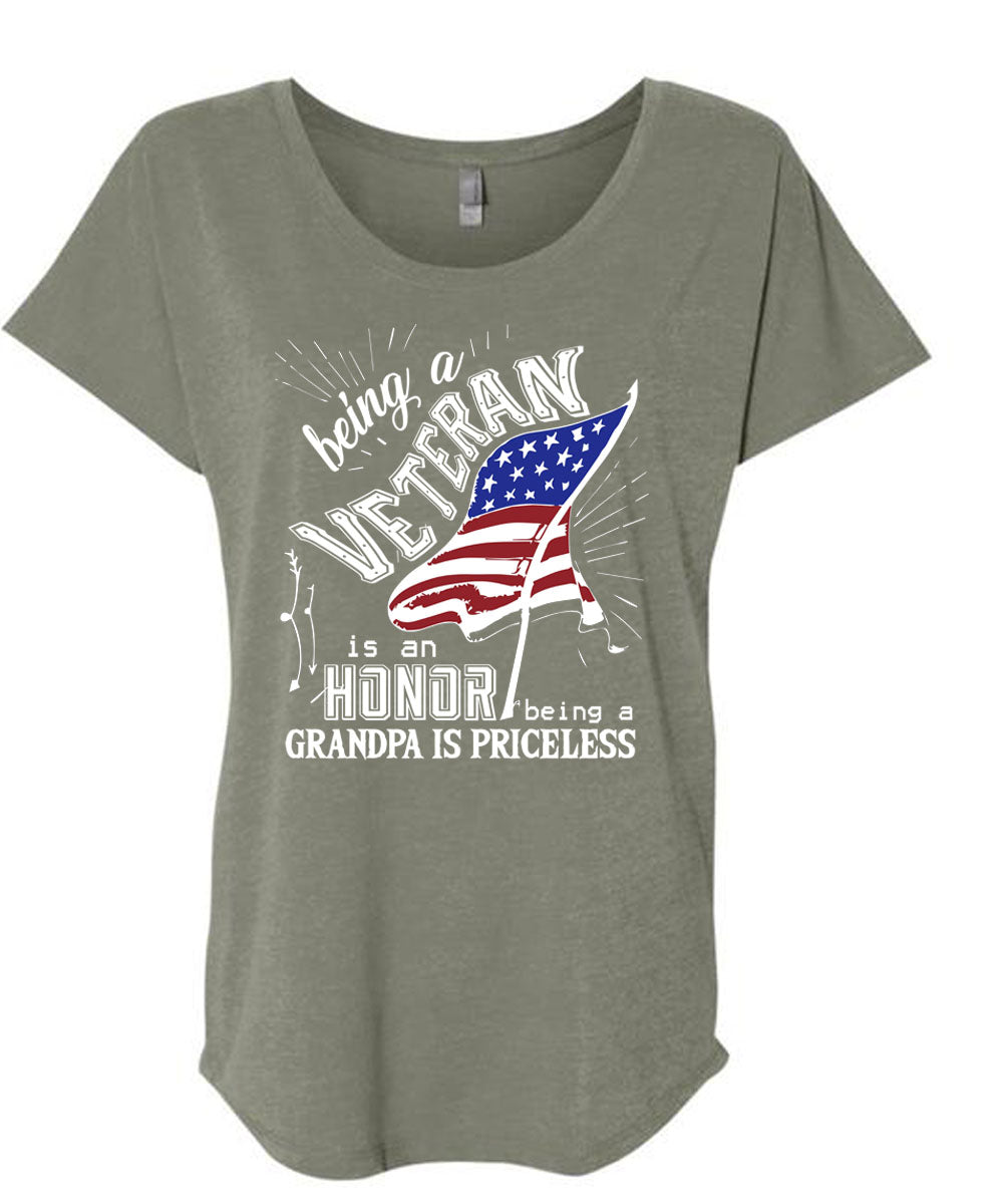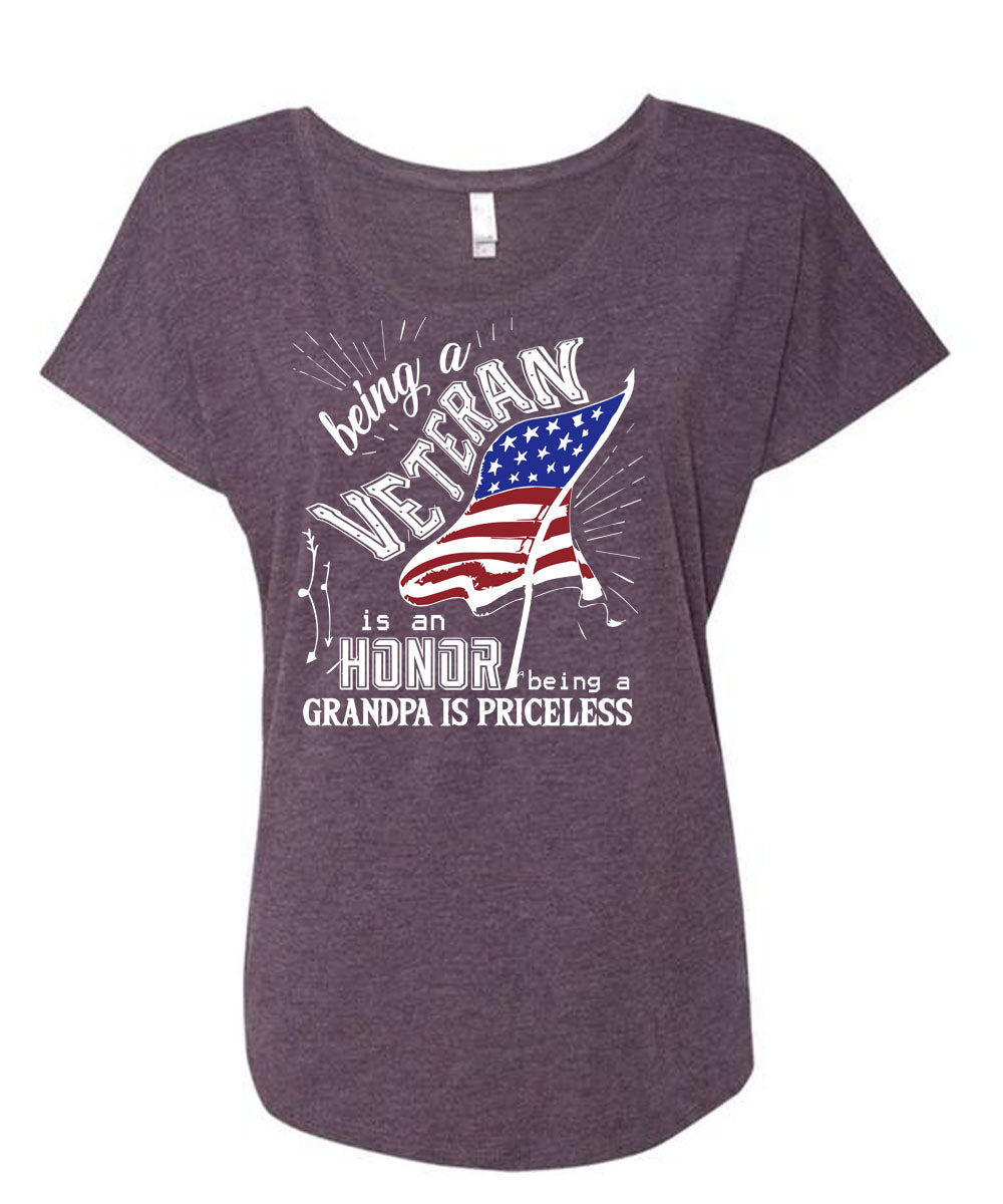 Being A Veteran Is An Honor T Shirt, Being A Grandpa Is Priceless T Shirt, Cool Shirt (Ladies' Triblend Dolman Sleeve)