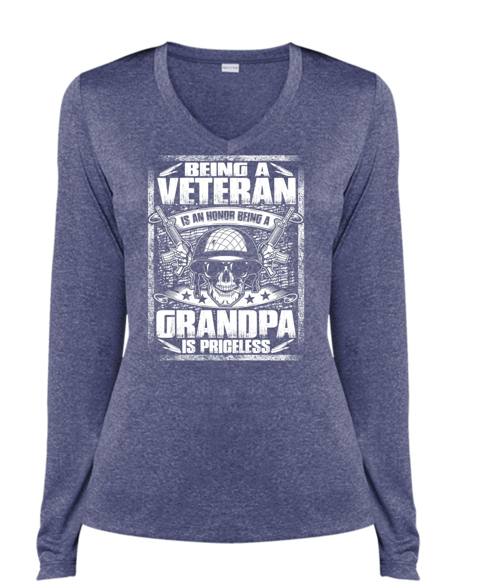 Being A Veteran T Shirt, Grandpa Is Priceless T Shirt, Cool Shirt (Ladies LS Heather V-Neck)