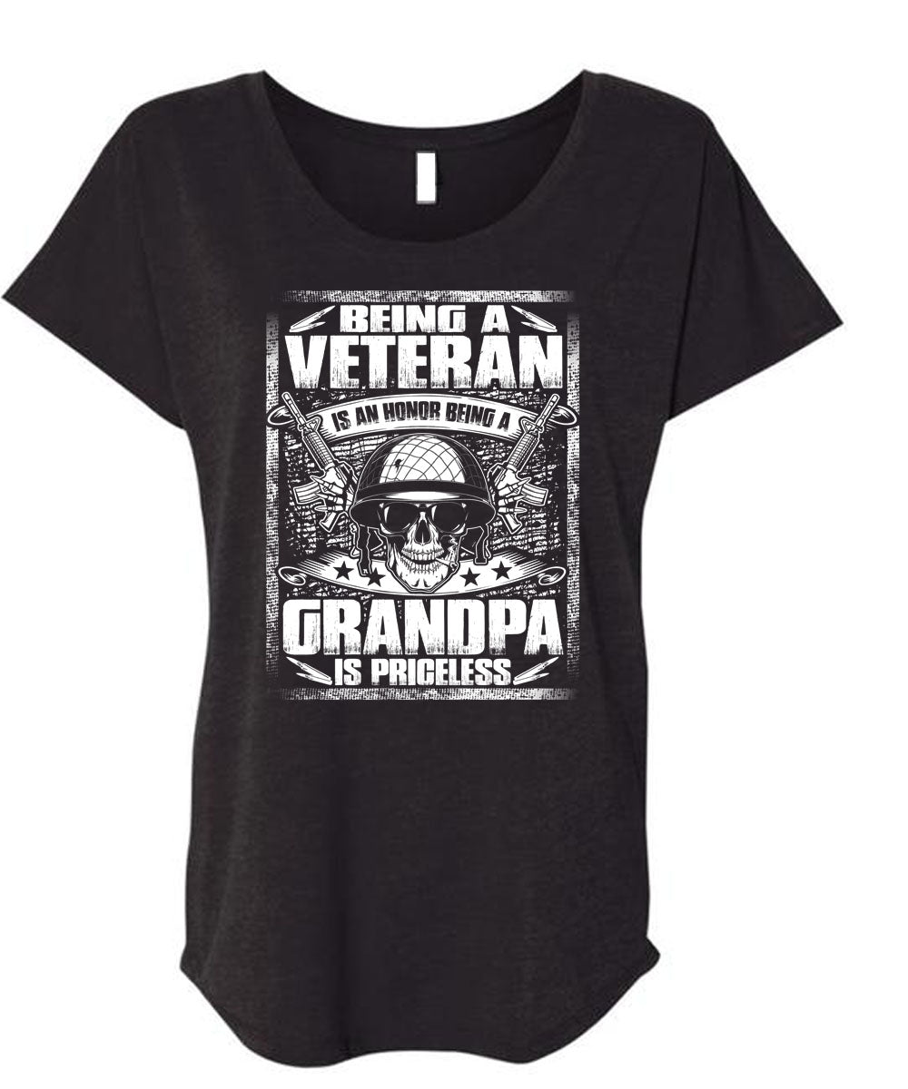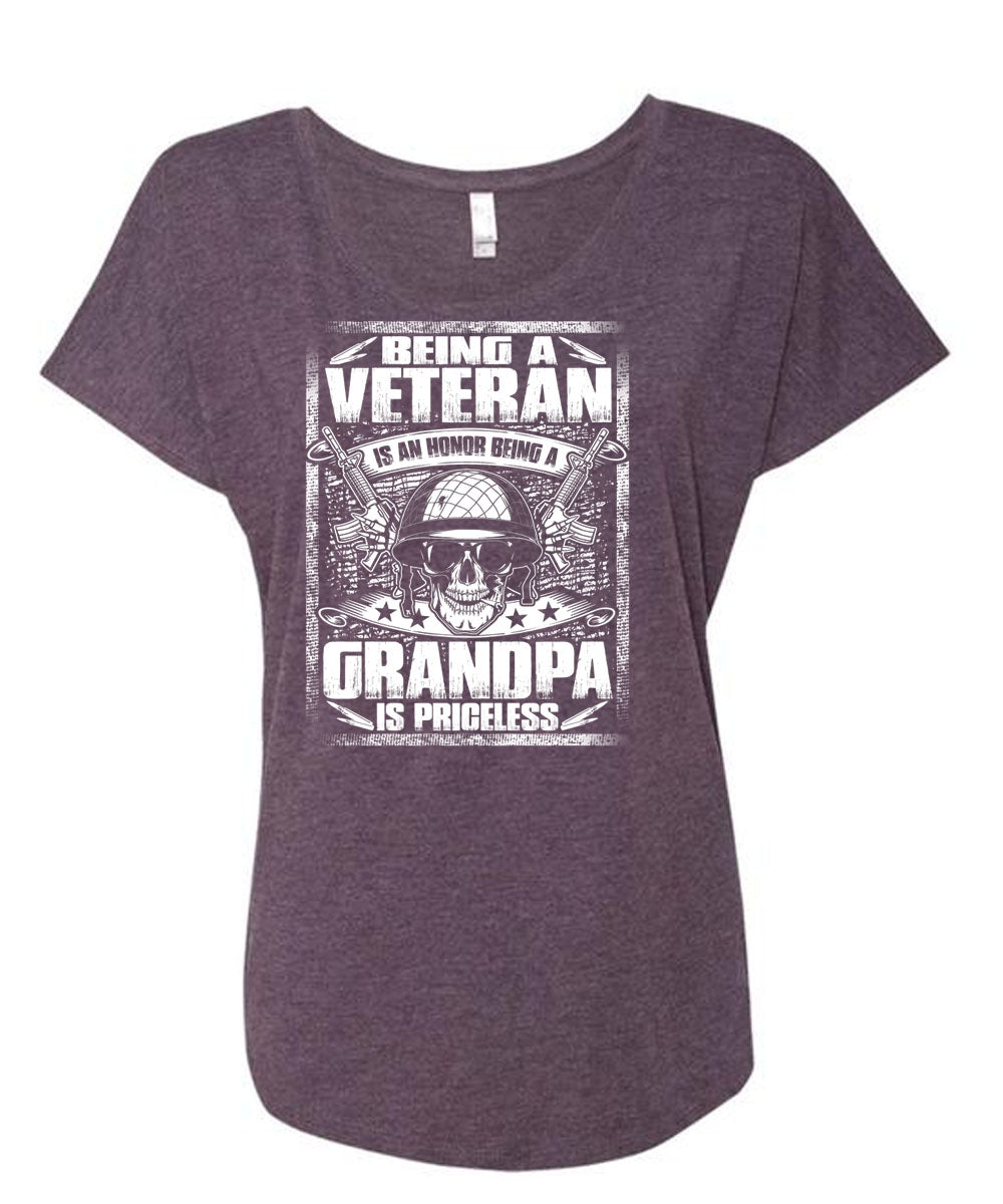 Being A Veteran T Shirt, Grandpa Is Priceless T Shirt, Cool Shirt (Ladies' Triblend Dolman Sleeve)