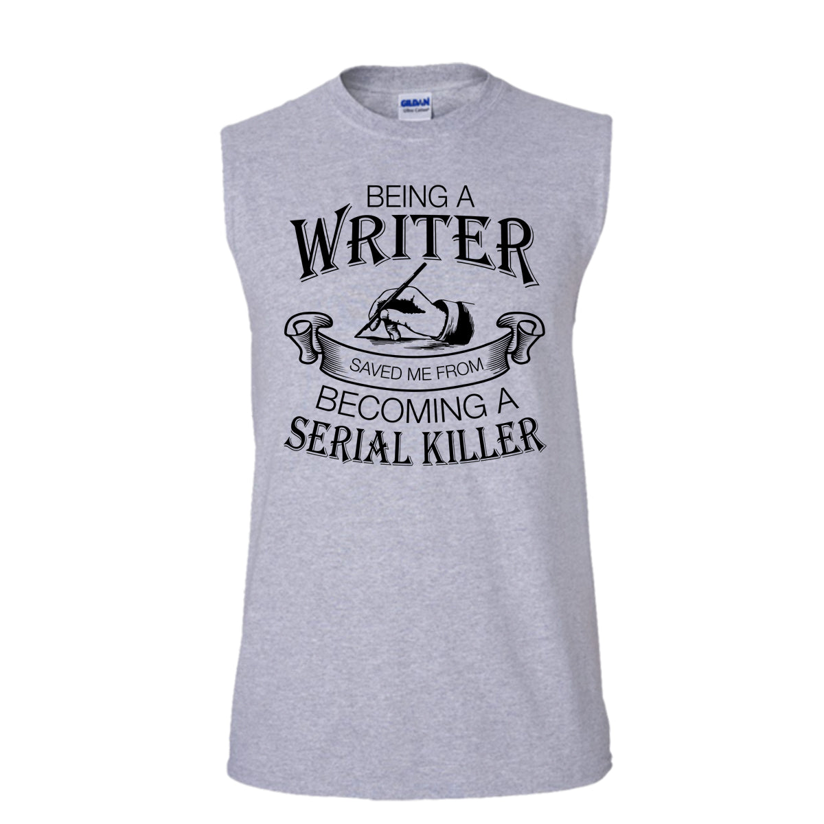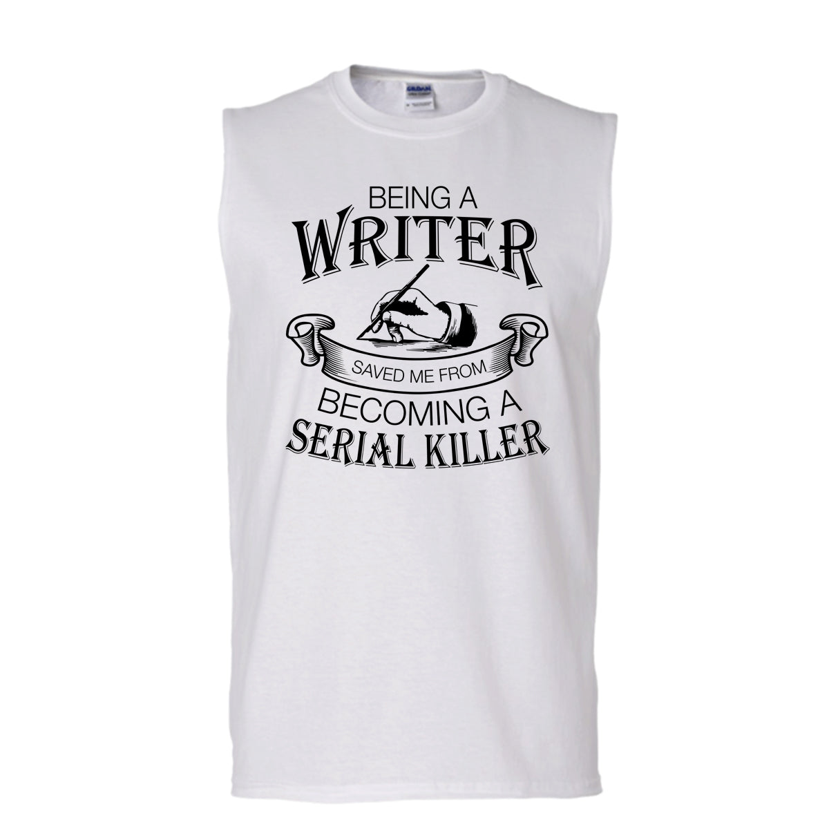 Being A Writer Save Me From Becoming A Serial Killer T Shirt, Coolest Writer T Shirt, Awesome t-shirts (Men's Cotton Sleeveless)