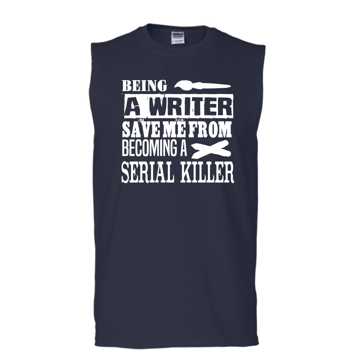 Being A Writer T Shirt, Save Me From Becoming A Serial Killer T Shirt, Cool T Shirt (Men's Cotton Sleeveless)