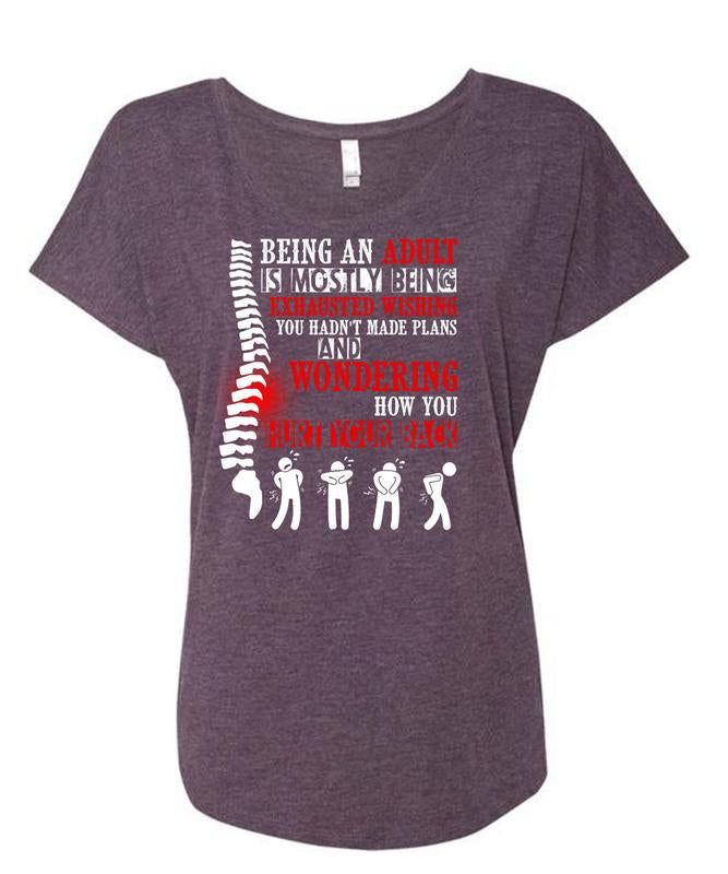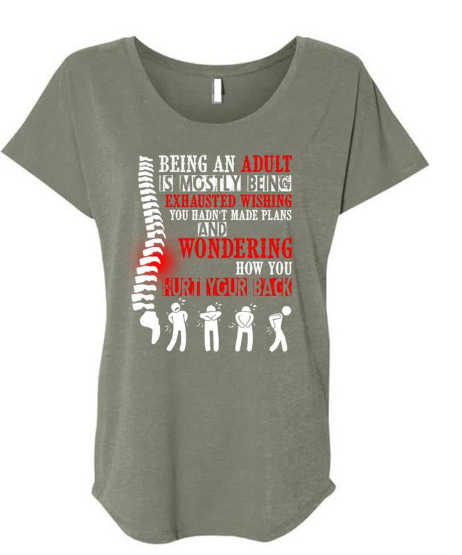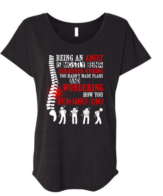 Being An Adult Is Mostly T Shirt, Hurt Your Back T Shirt, Cool Shirt (Ladies' Triblend Dolman Sleeve)