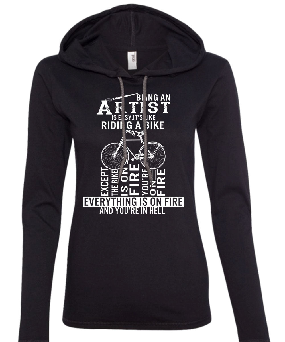 Being An Artist Is Easy T Shirt, It's Like Riding A Bike T Shirt (Anvil Ladies Ringspun Hooded)