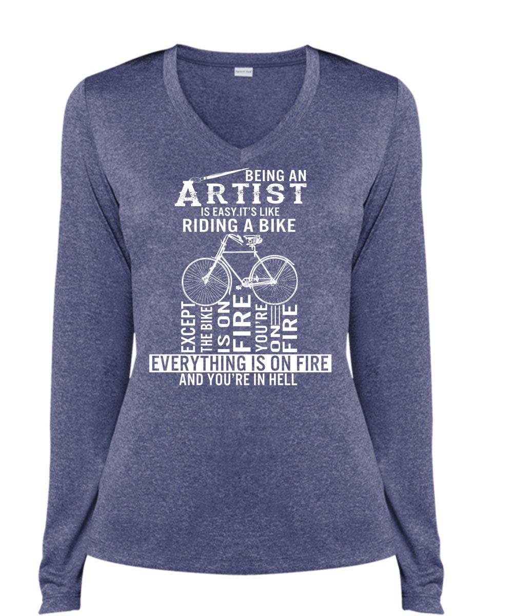 Being An Artist Is Easy T Shirt, It's Like Riding A Bike T Shirt, Cool Shirt (Ladies LS Heather V-Neck)