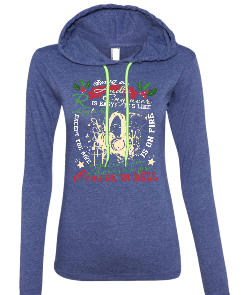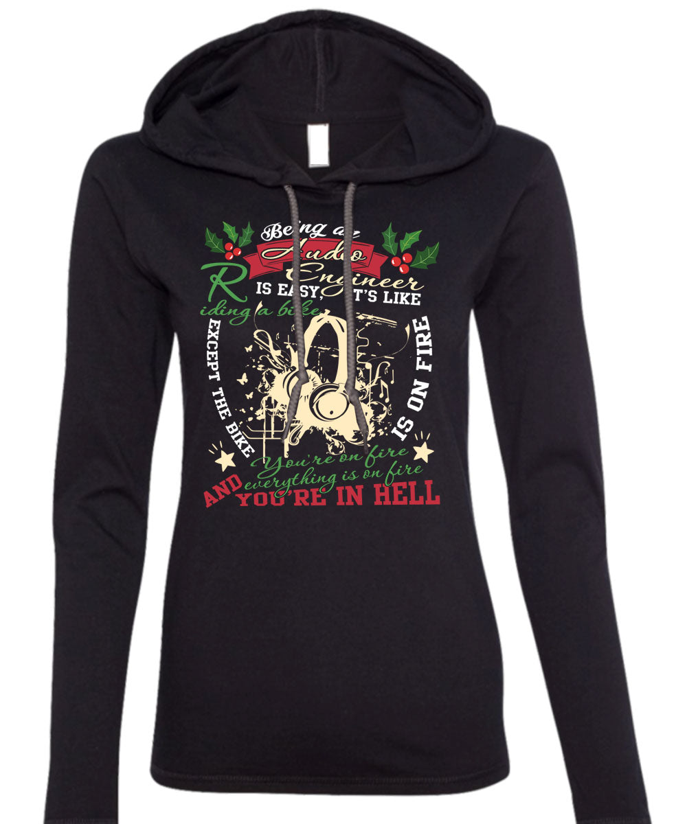 Being An Audio Engineer Is Easy T Shirt, It's Like Riding A Bike T Shirt (Anvil Ladies Ringspun Hooded)