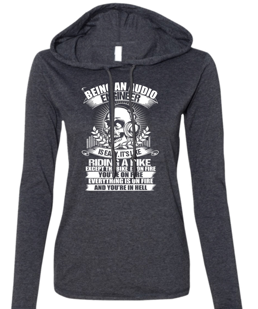 Being An Audio Engineer T Shirt, Riding A Bike T Shirt (Anvil Ladies Ringspun Hooded)