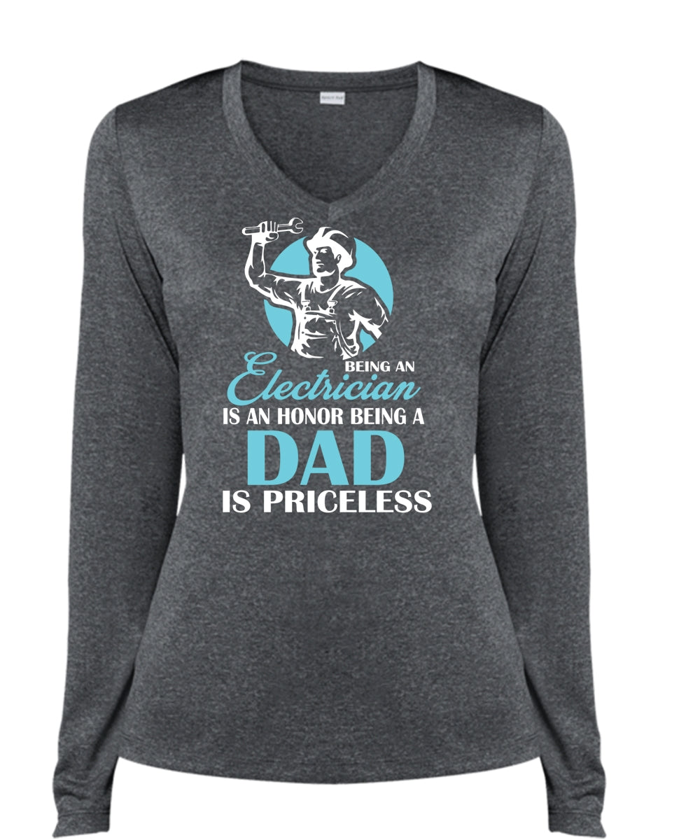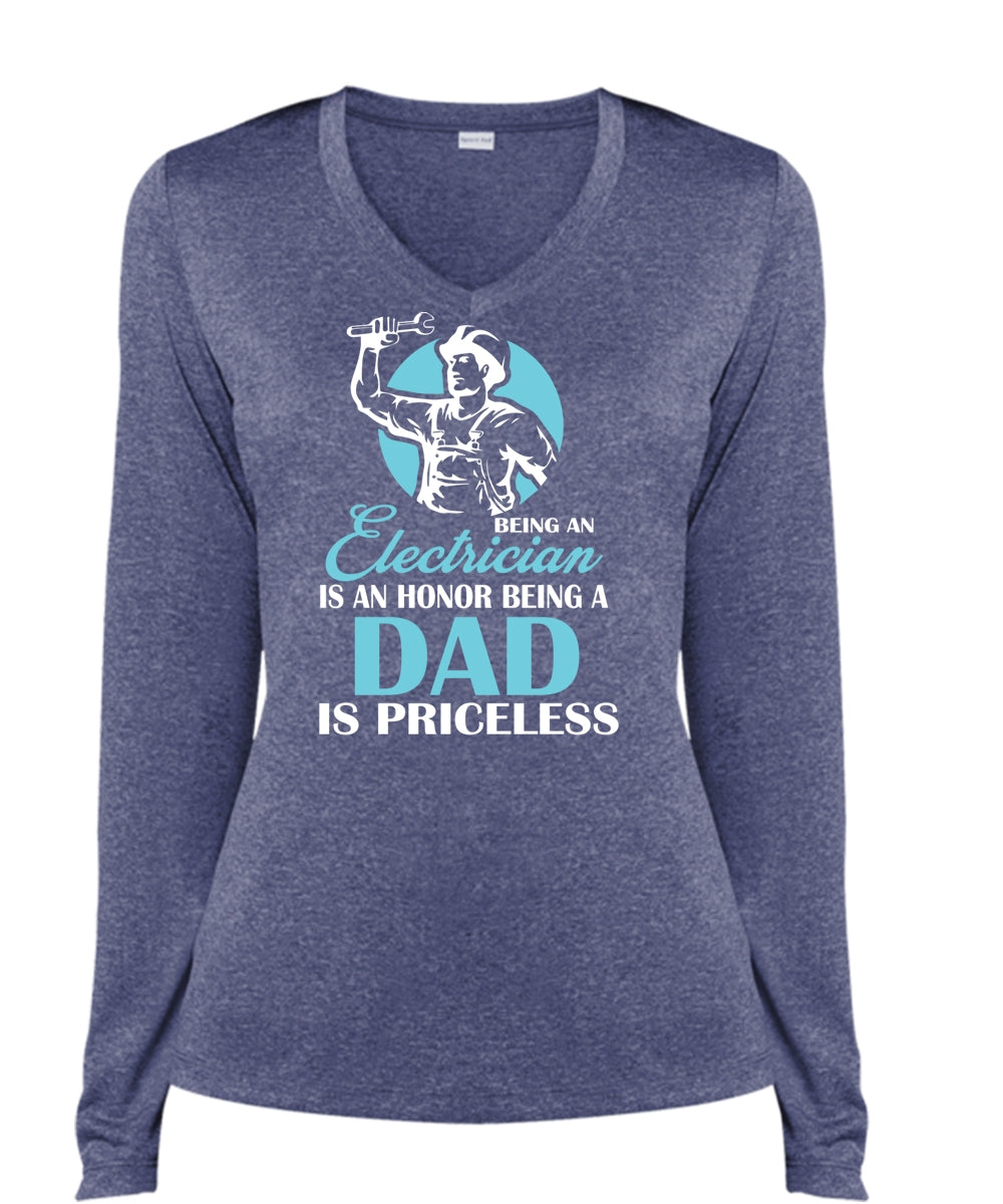 Being An Electrician Is An Honor Being A Dad Is Priceless T Shirt, Job T Shirt (Ladies LS Heather V-Neck)
