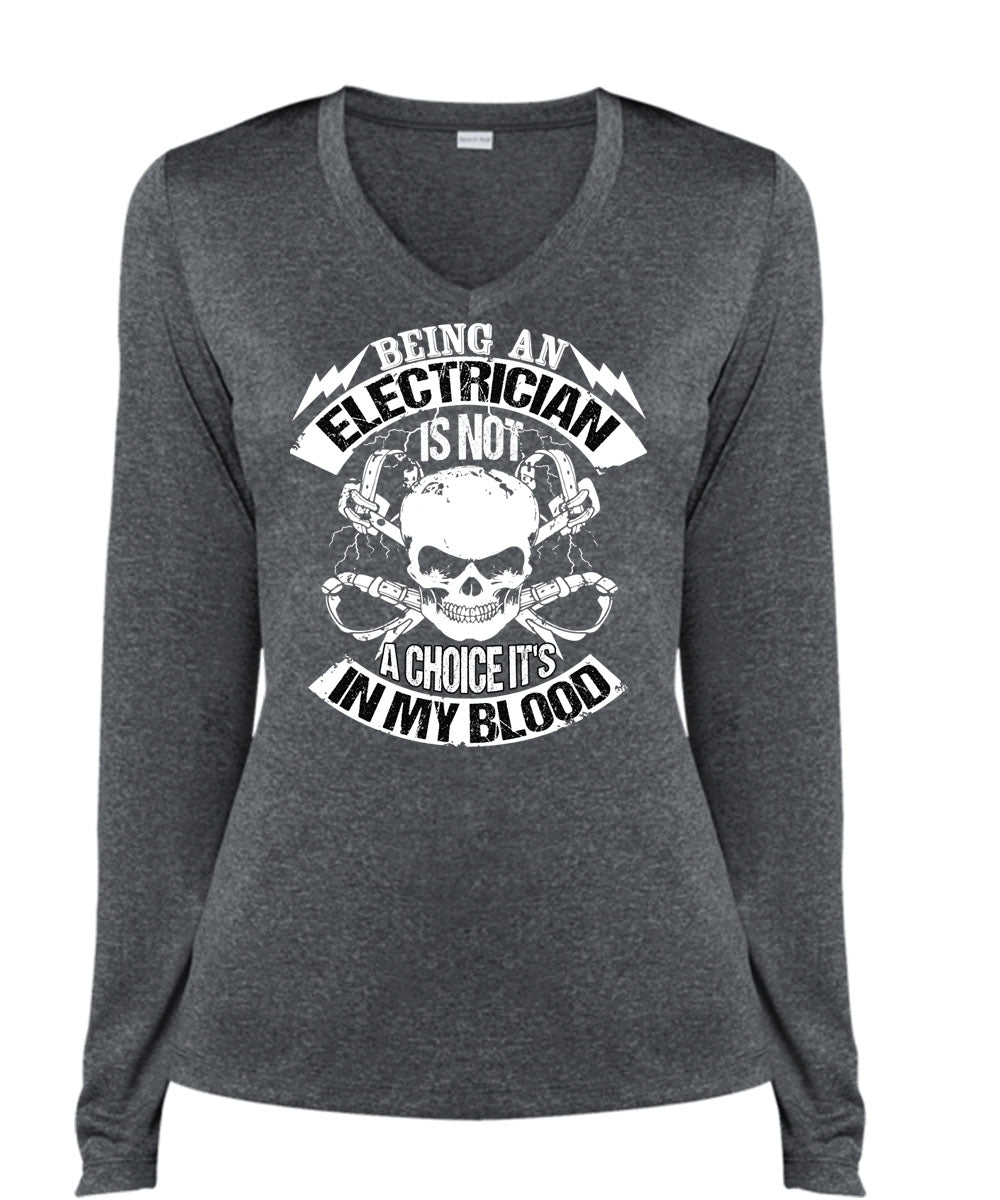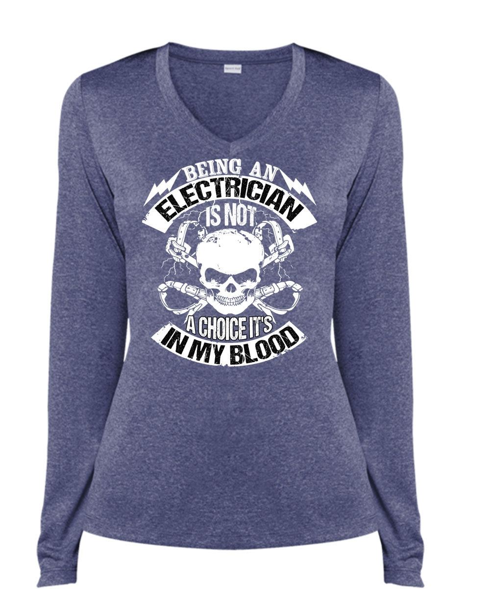 Being An Electrician T Shirt, It's In My Blood T Shirt, Cool Shirt (Ladies LS Heather V-Neck)