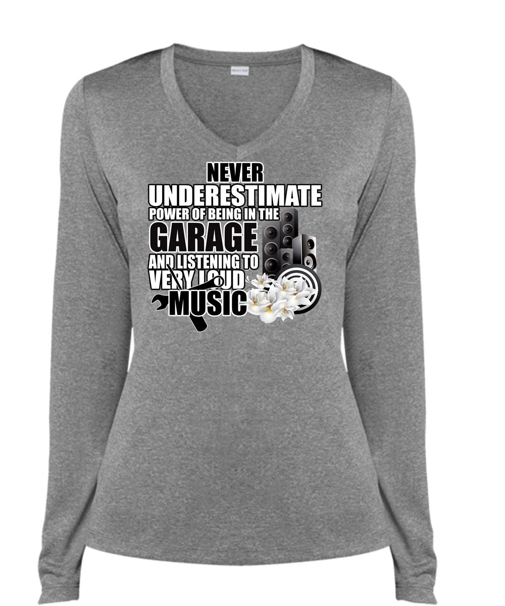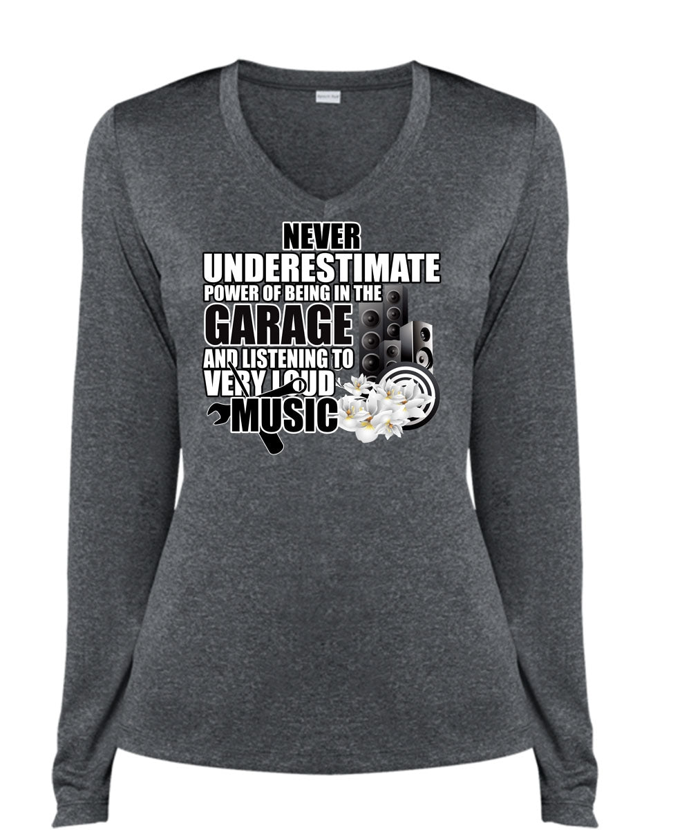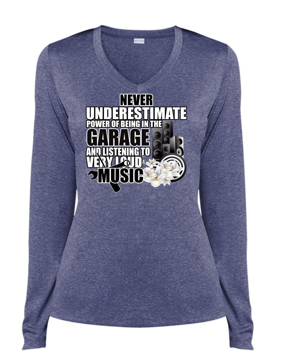 Being In The Garage T Shirt, Listening To Very Loud Music T Shirt, Cool Shirt (Ladies LS Heather V-Neck)