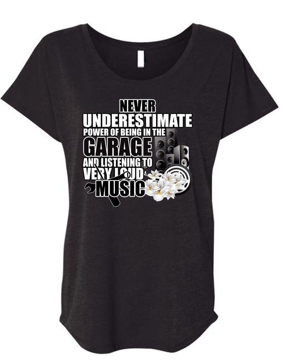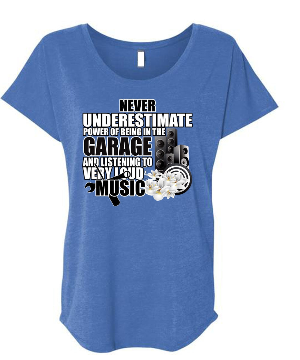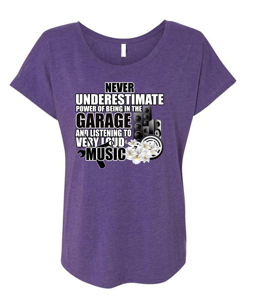 Being In The Garage T Shirt, Listening To Very Loud Music T Shirt, Cool Shirt (Ladies' Triblend Dolman Sleeve)