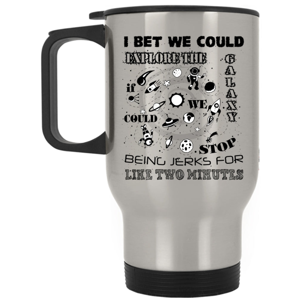 Being Jerks For Like Two Minutes Travel Mug, I Bet We Could Explore The Galaxy Mug