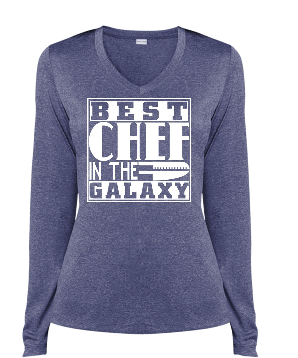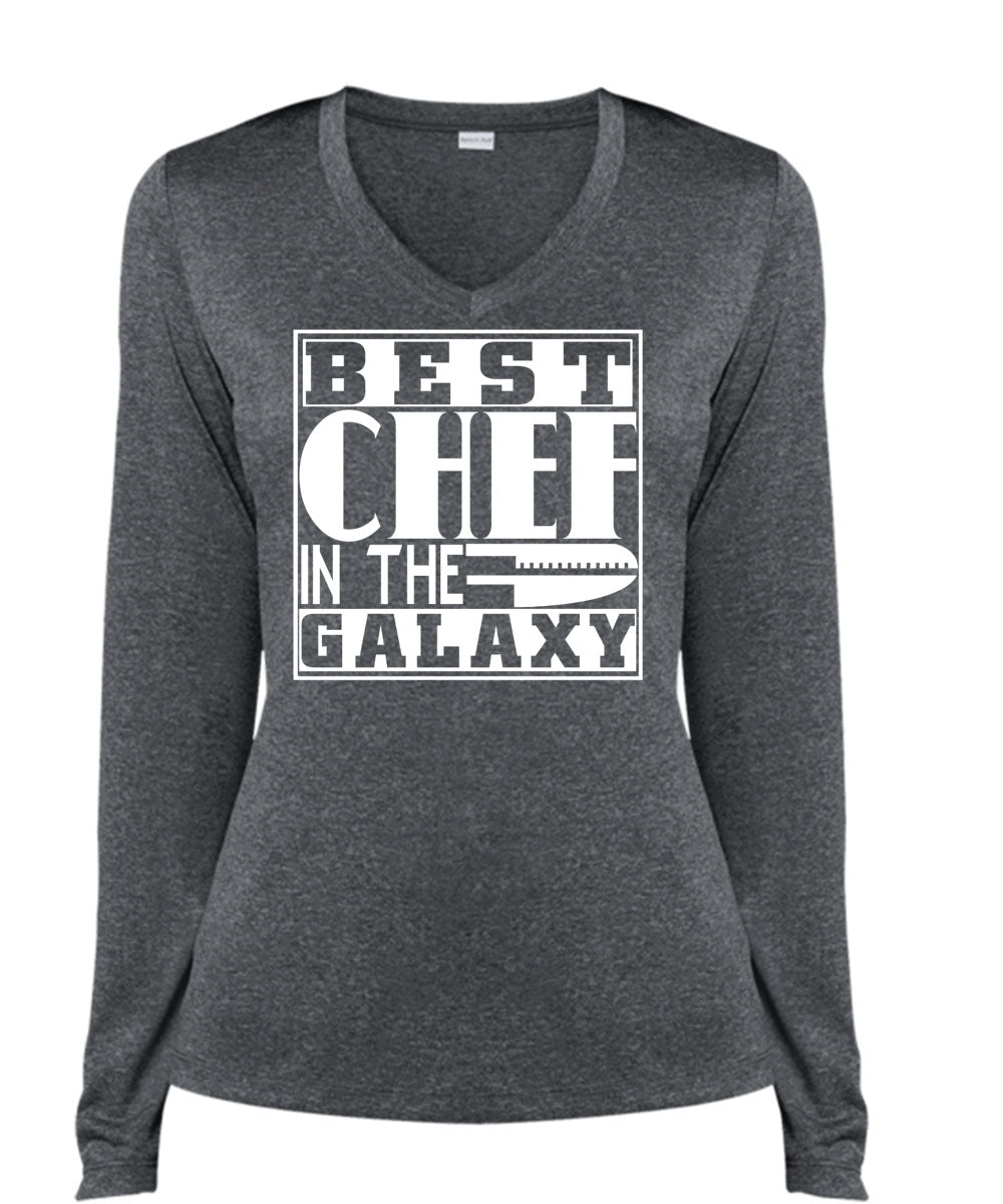 Best Chef In The Galaxy T Shirt, I Love Chef T Shirt, Career T Shirt (Ladies LS Heather V-Neck)