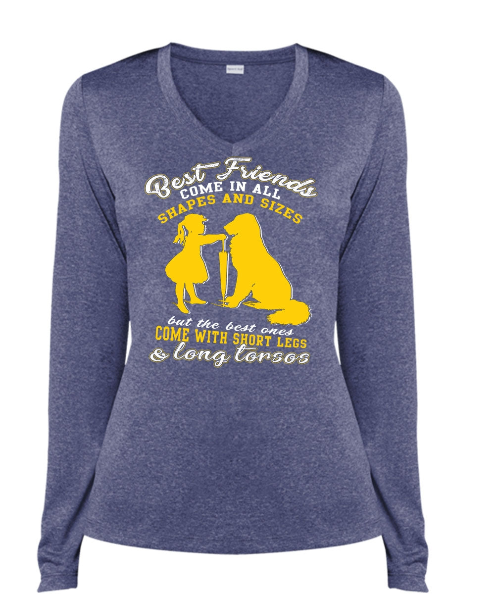 Best Friends Come In All Shapes T Shirt, My Favorite T Shirt, Cool Shirt (Ladies LS Heather V-Neck)