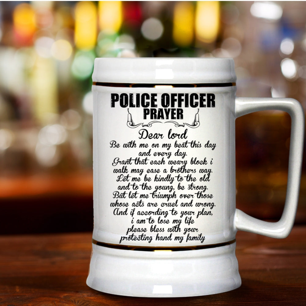Best Gift For Police Officer Beer Stein 22oz, Police Officer Prayer Beer Mug