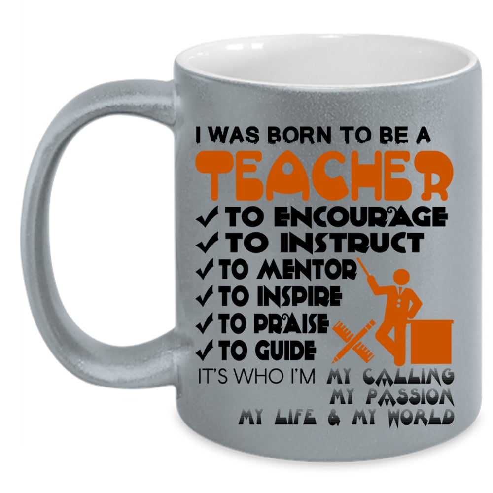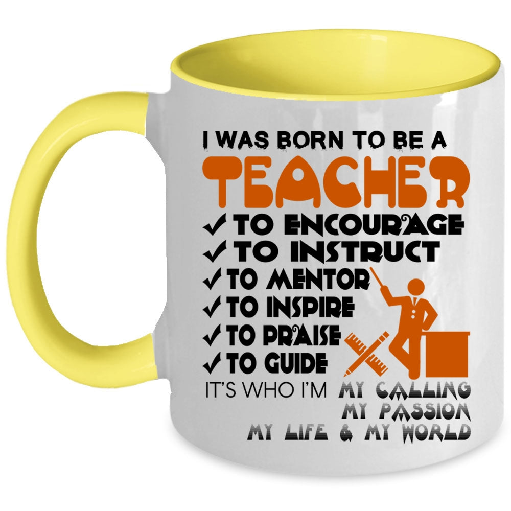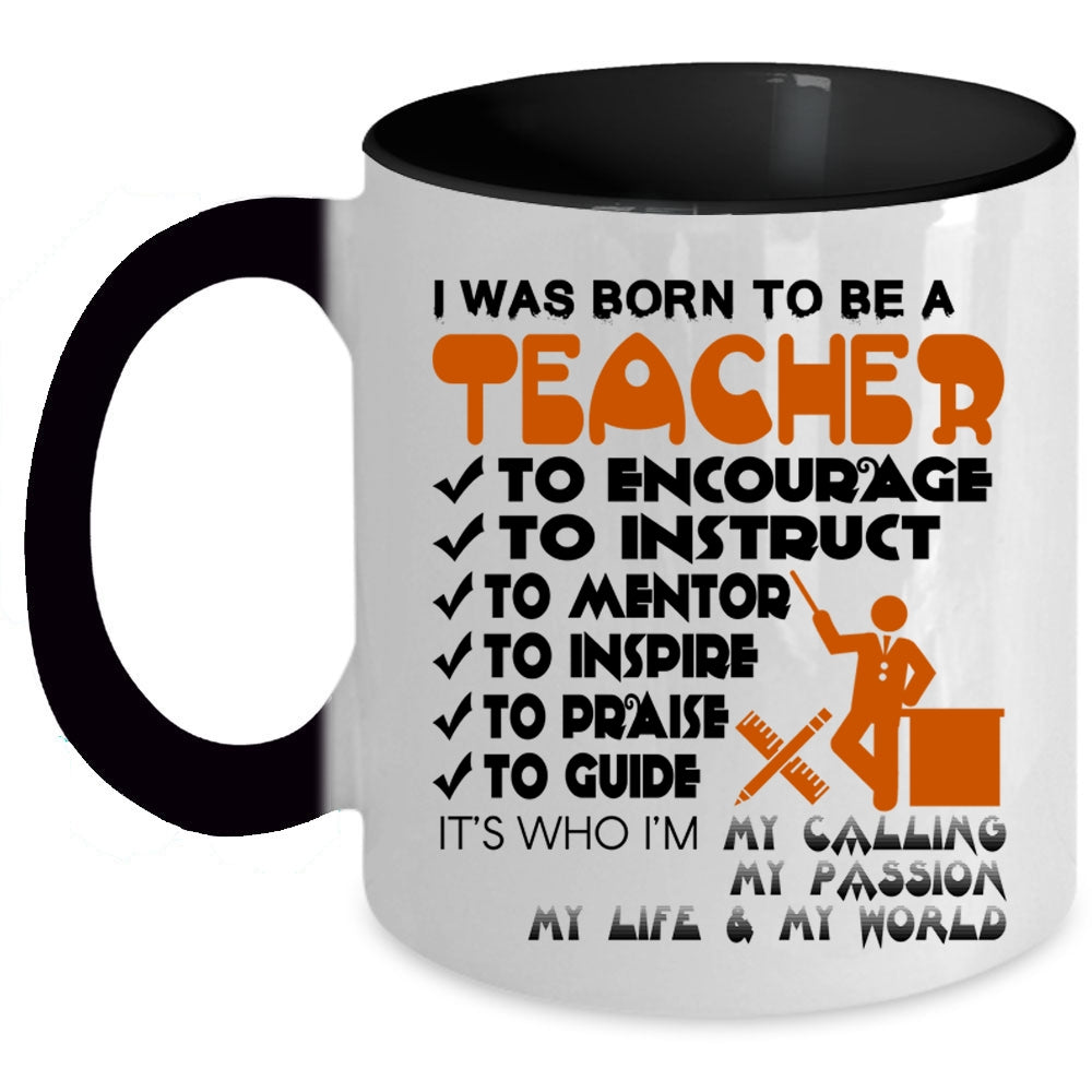 Best Gift For Teacher Coffee Mug, I Was Born To Be A Teacher Accent Mug