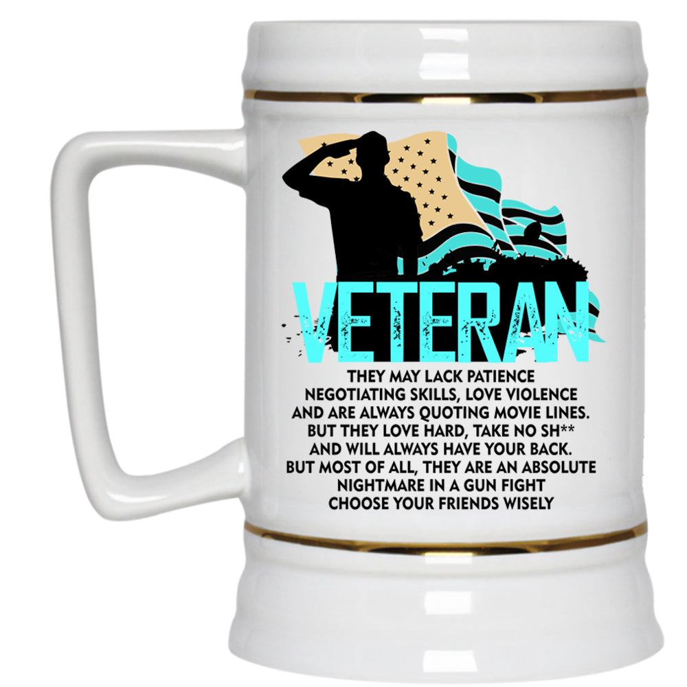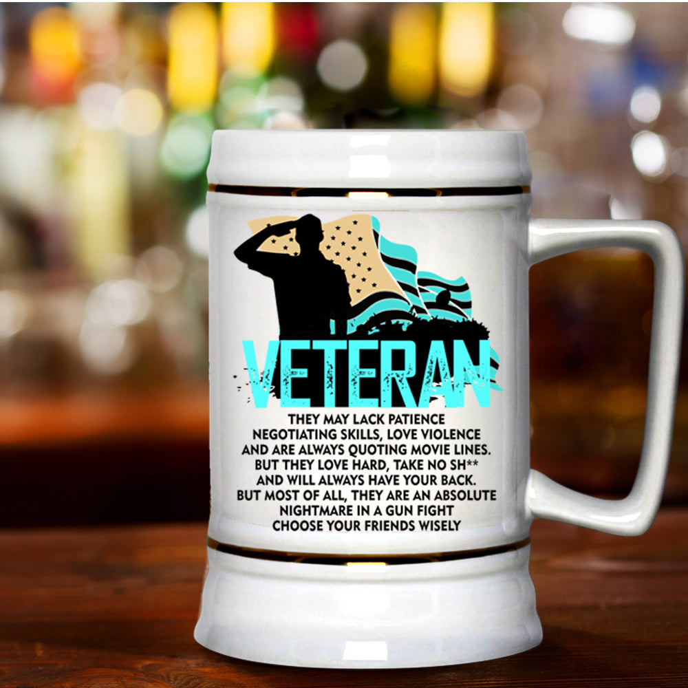 Best Gift For Veteran Beer Stein 22oz, Cool Veteran Beer Mug