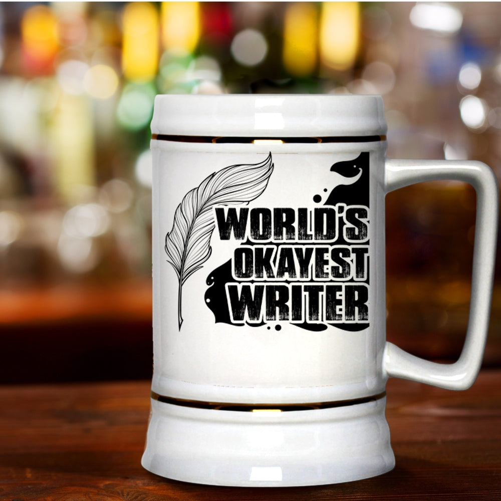 Best Gift For Writer Beer Stein 22oz, World's Okayest Writer Beer Mug