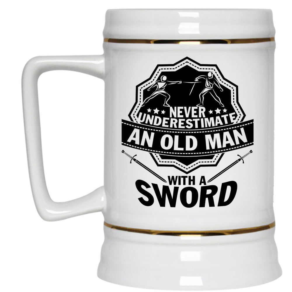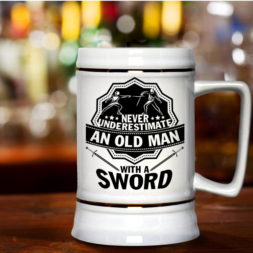 Best Grandpa Ever Beer Stein 22oz, An Old Man With Sword Beer Mug