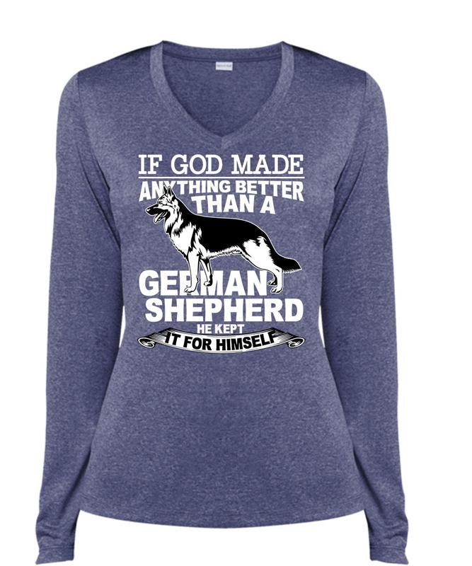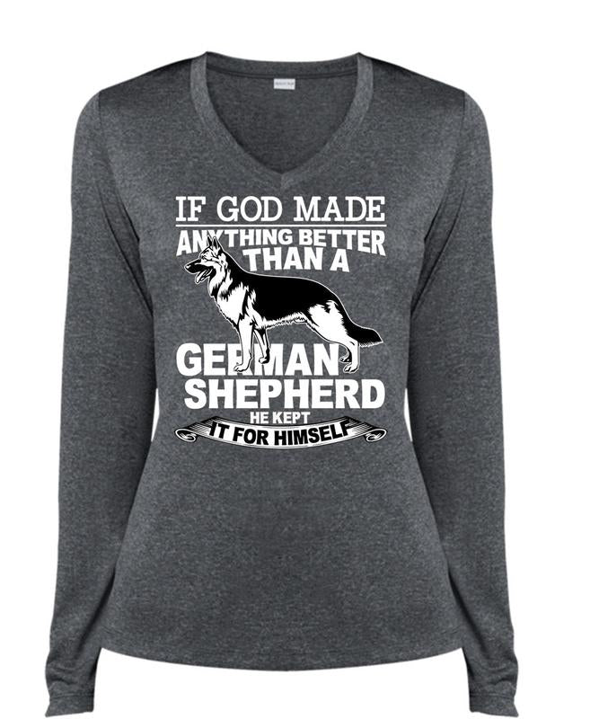 Better Than A German Shepherd T Shirt, He Kept It For Himself T Shirt, Cool Shirt (Ladies LS Heather V-Neck)