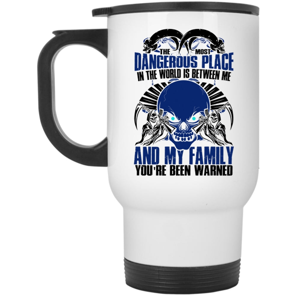 Between Me And My Family Travel Mug, The Most Dangerous Place In The World Mug