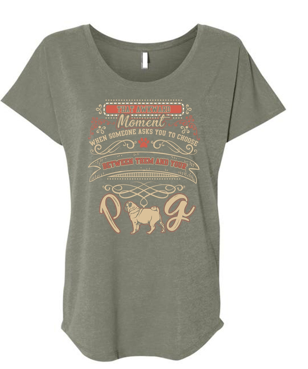 Between Them And Your Pug T Shirt, I Love Pug T Shirt, Cool Shirt (Ladies' Triblend Dolman Sleeve)