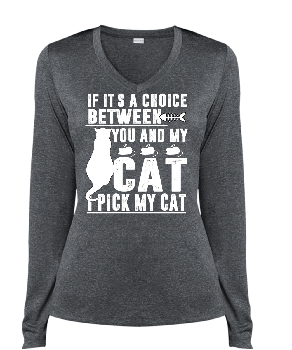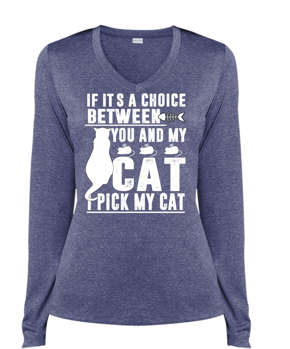 Between You And My Cat T Shirt, I Love My Cat T Shirt, Cool Shirt (Ladies LS Heather V-Neck)