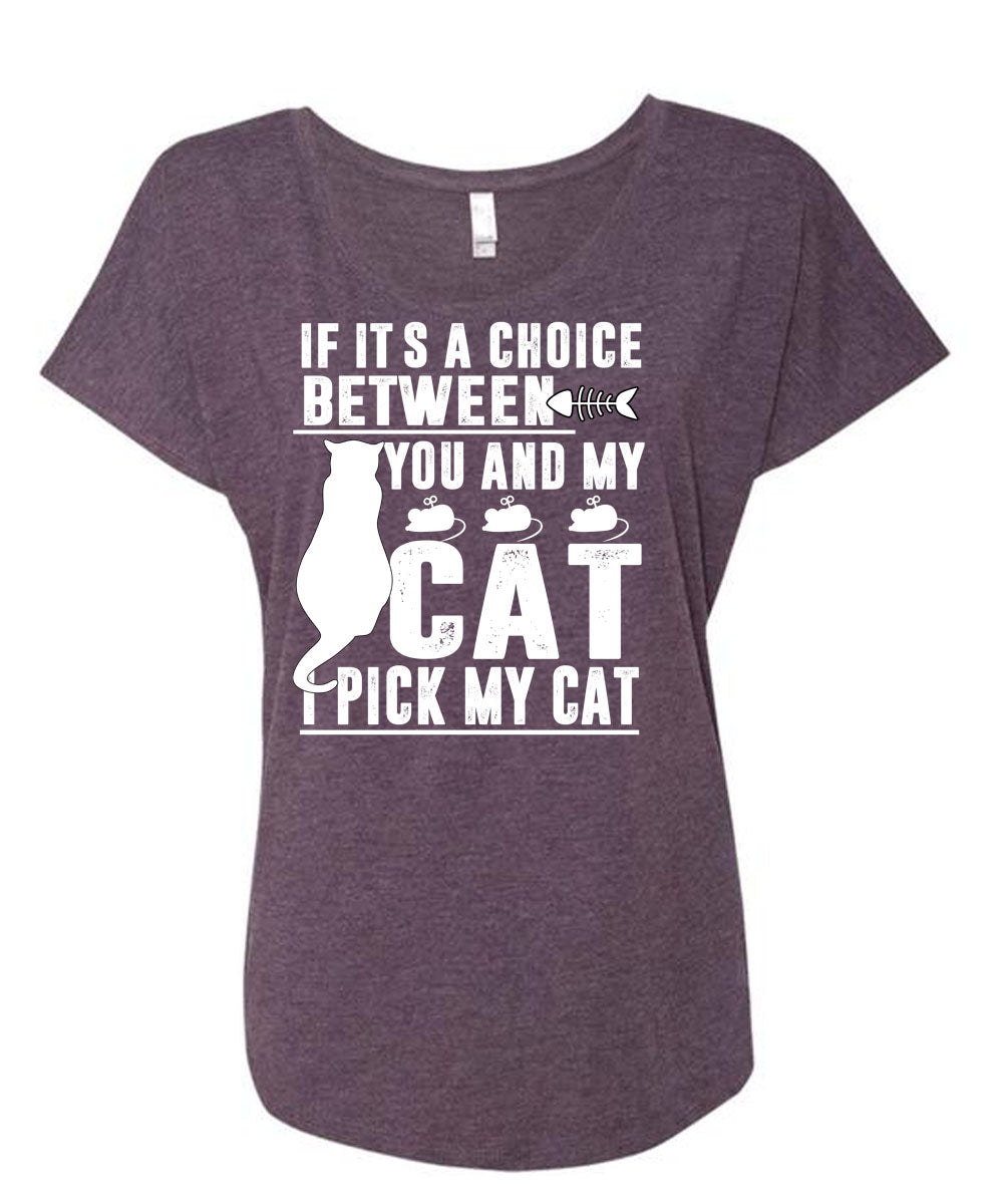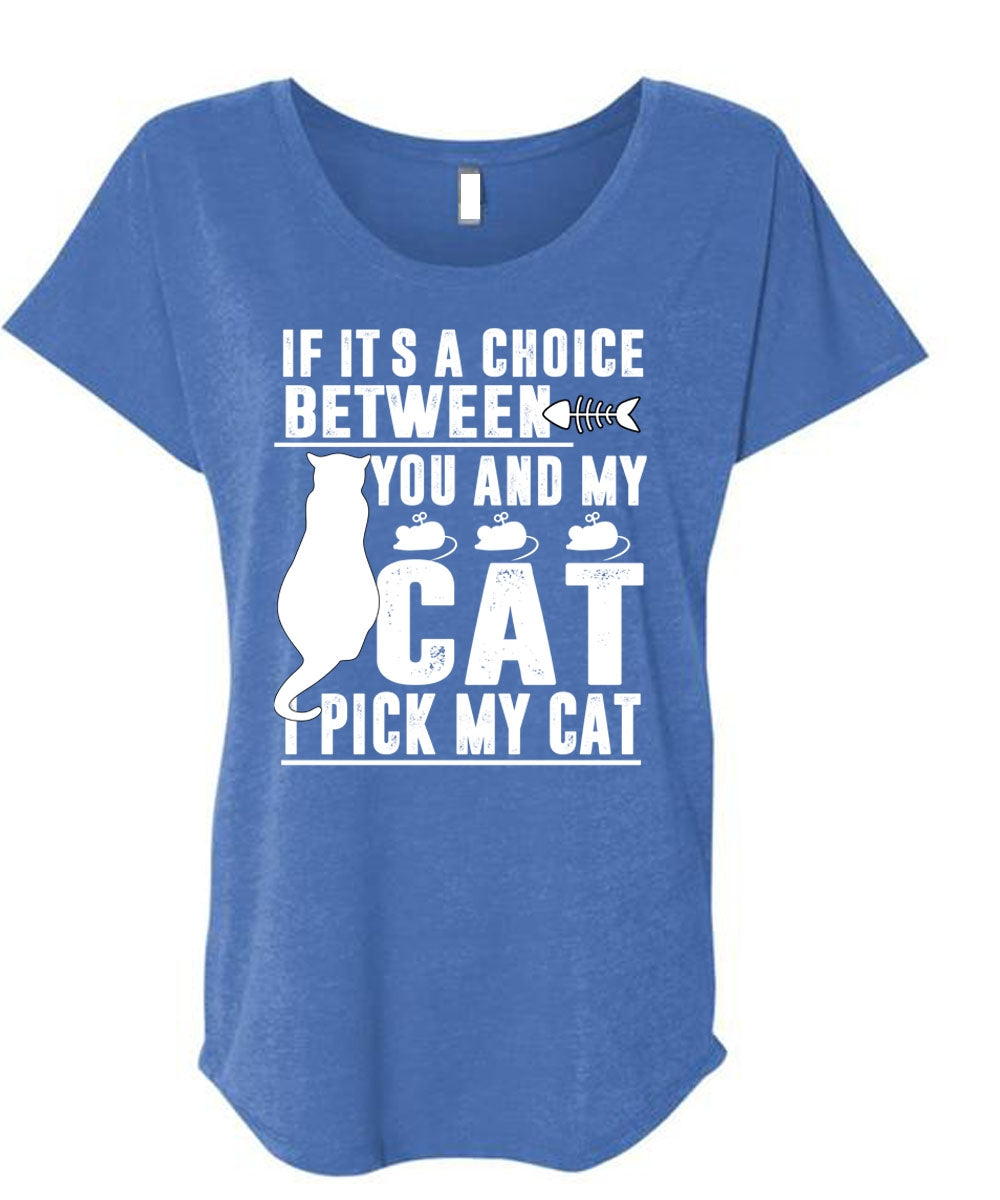 Between You And My Cat T Shirt, I Love My Cat T Shirt, Cool Shirt (Ladies' Triblend Dolman Sleeve)