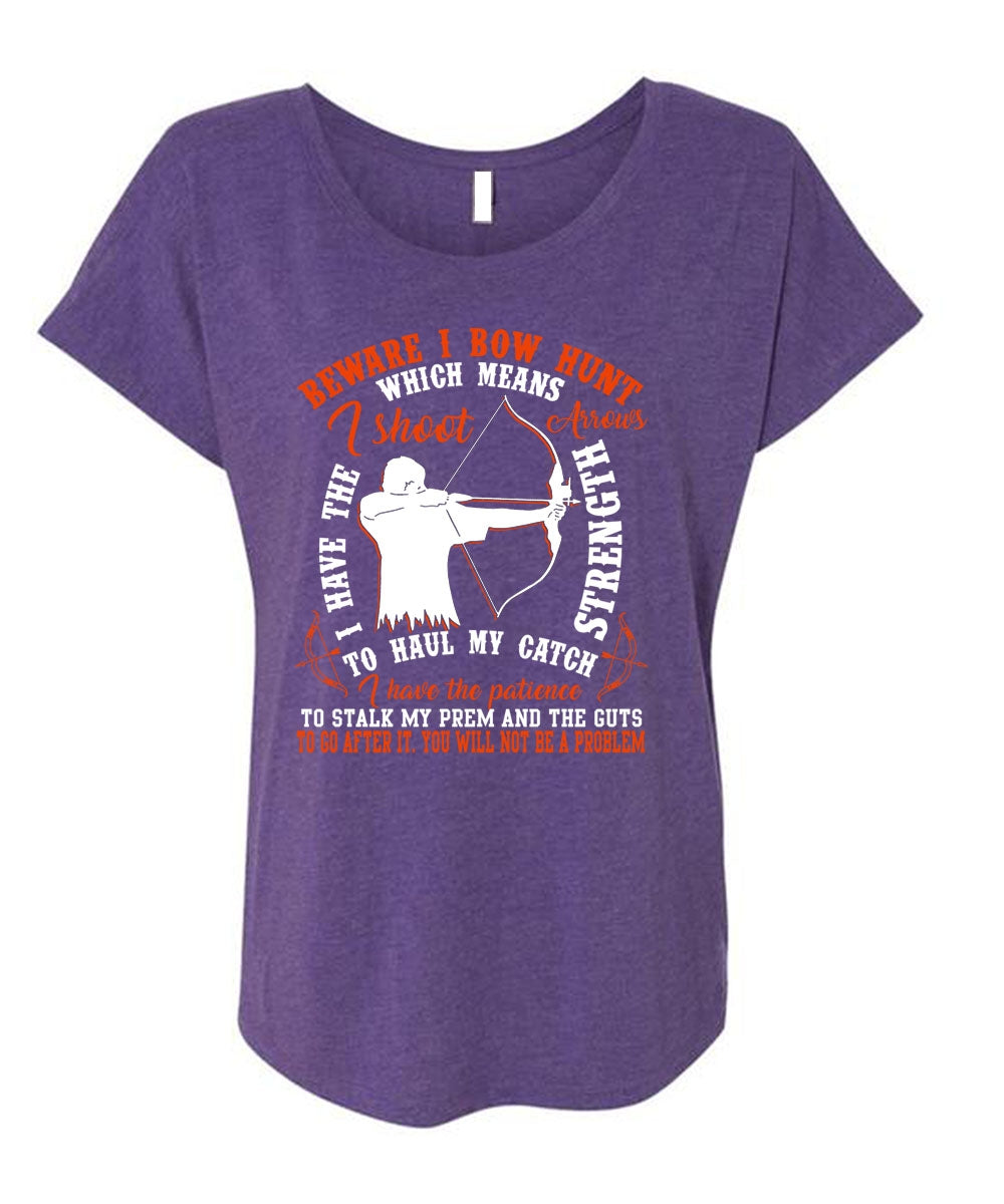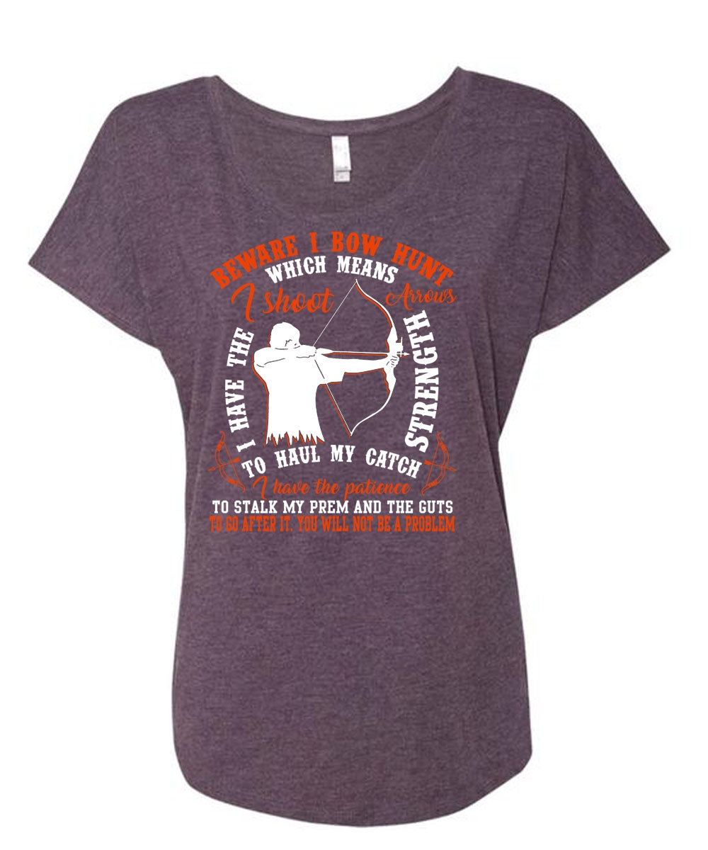 Beware I Bow Hunt T Shirt, I Shoot Arrows T Shirt, Cool Shirt (Ladies' Triblend Dolman Sleeve)