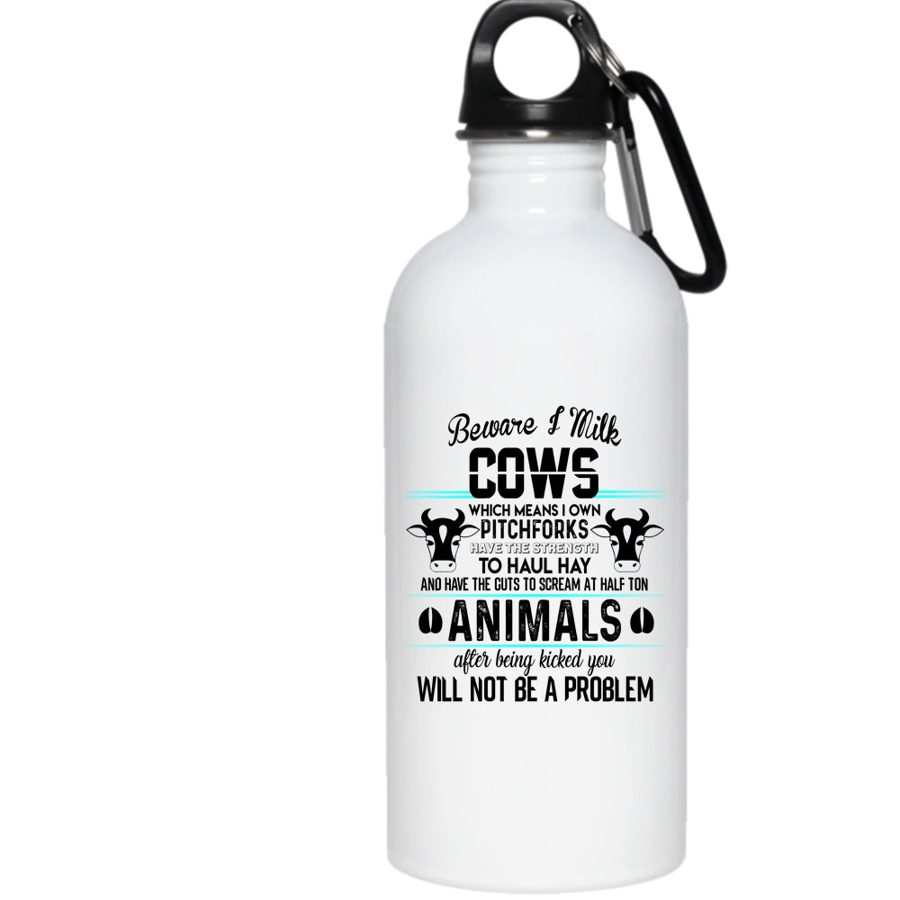 Beware I Milk Cows 20 oz Stainless Steel Bottle,I Own Pitchforks Outdoor Sports Water Bottle
