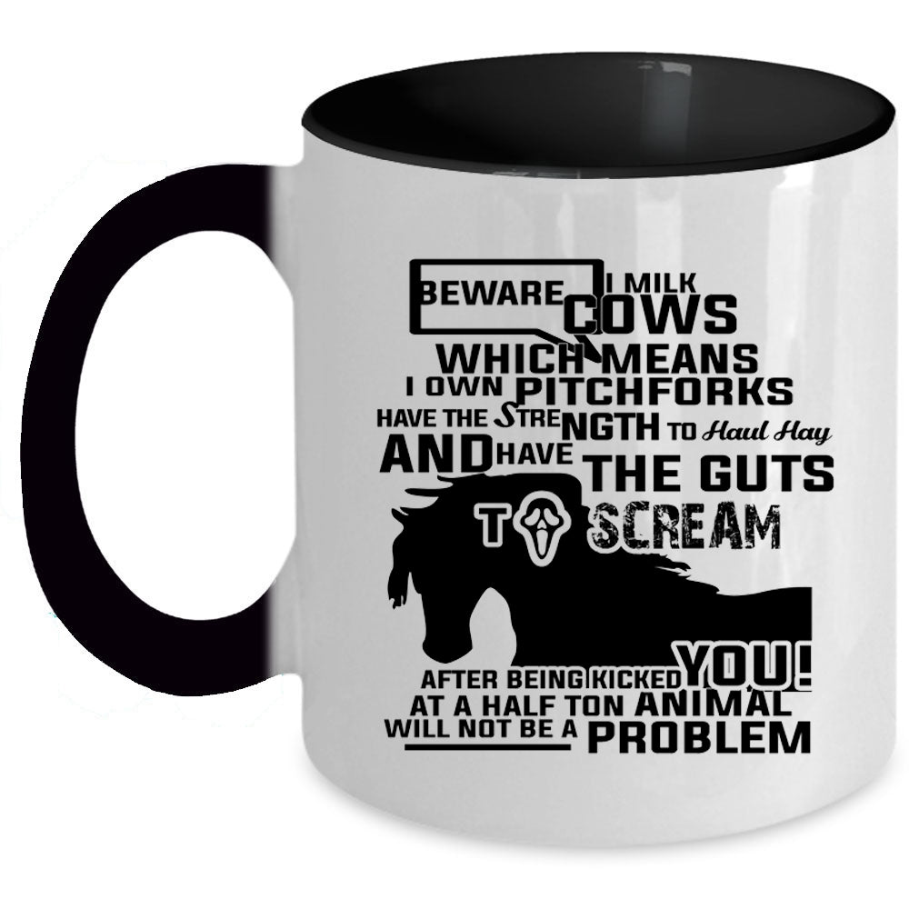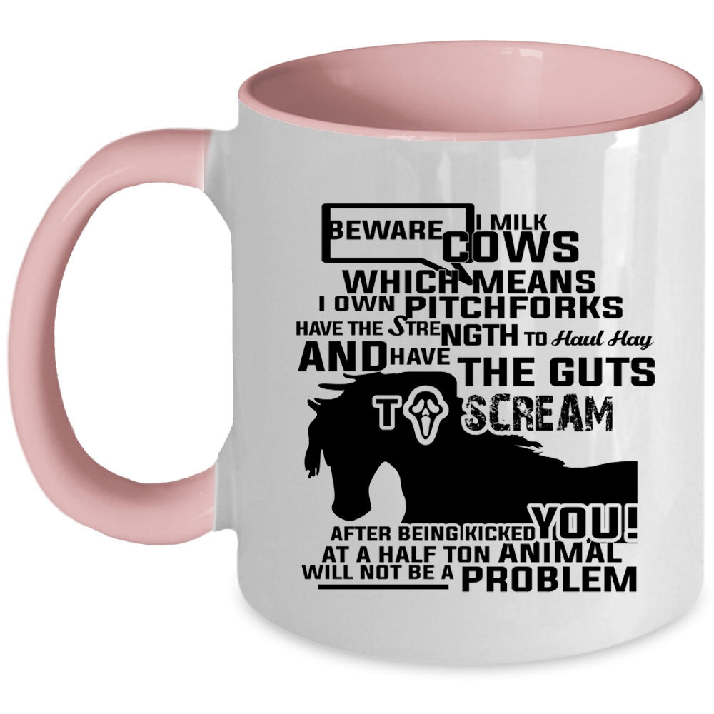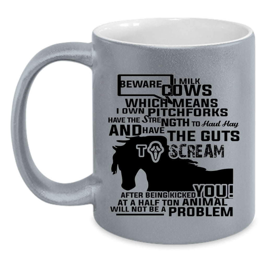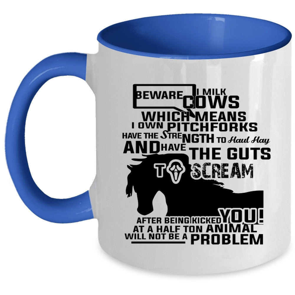 Beware I Milk Cows I Own Pitchforks Cup, Funny Mug