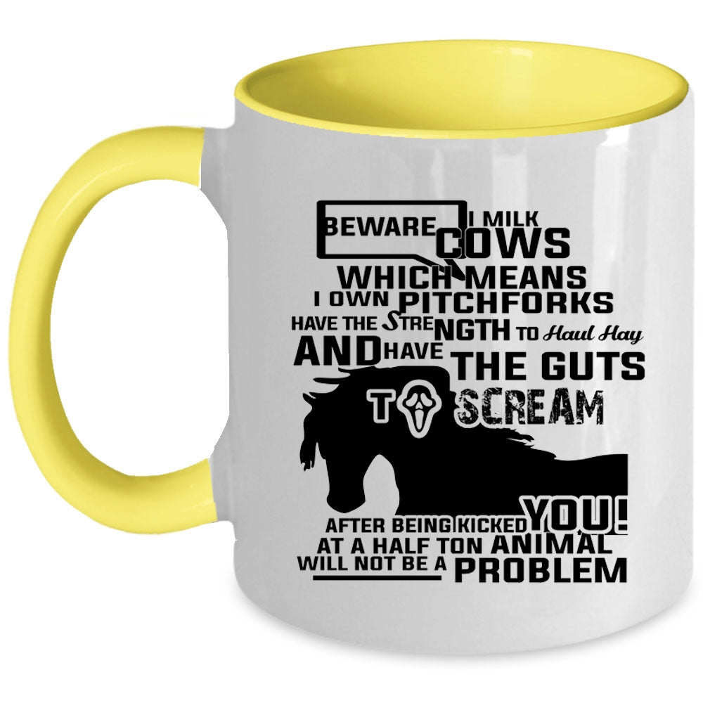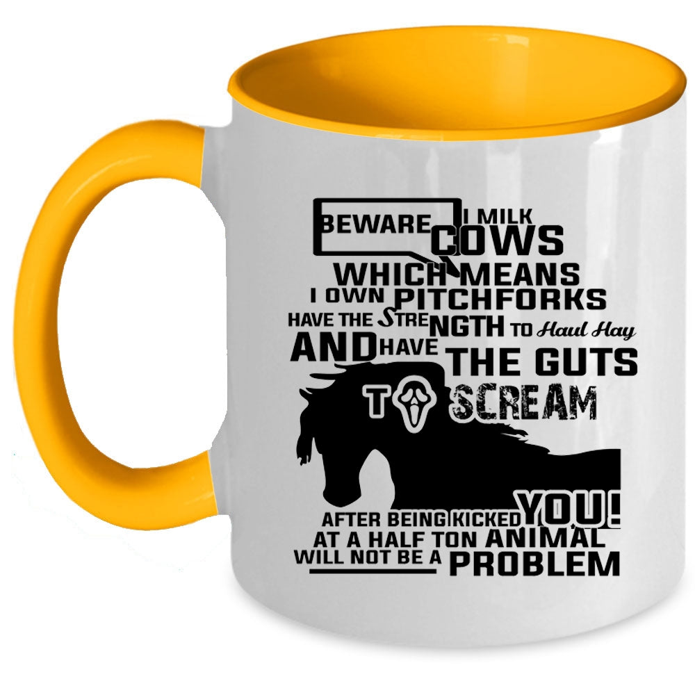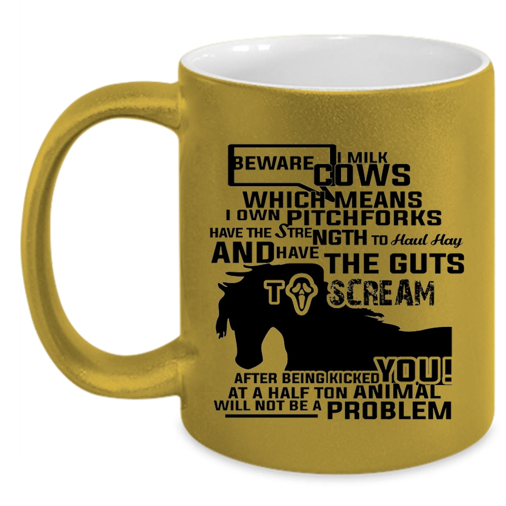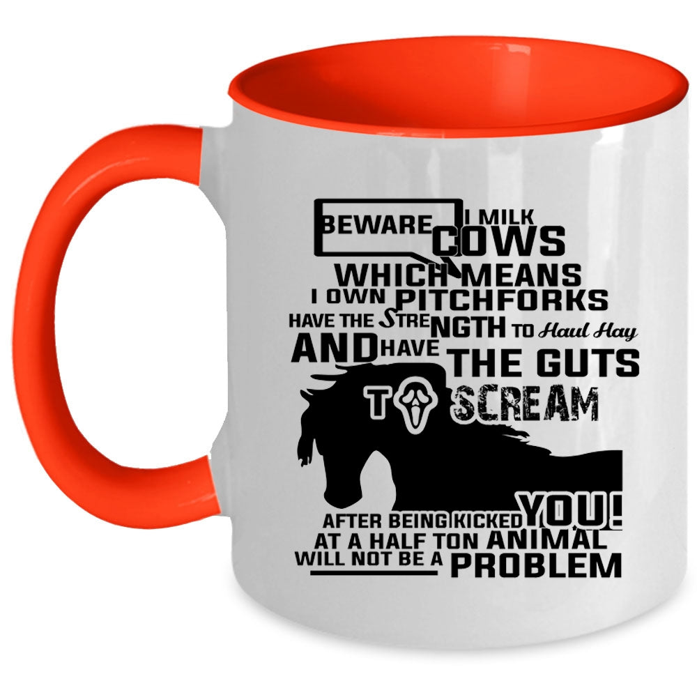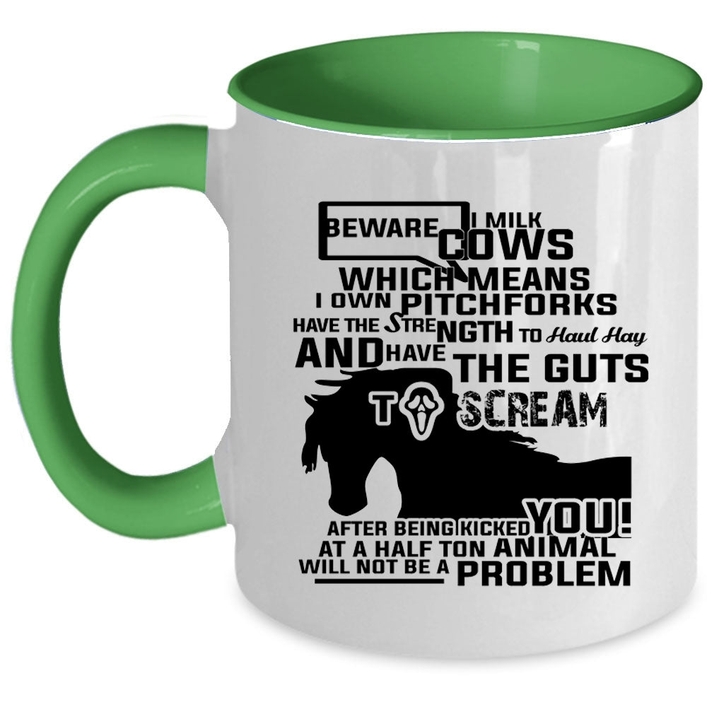 Beware I Milk Cows I Own Pitchforks Cup, Funny Mug