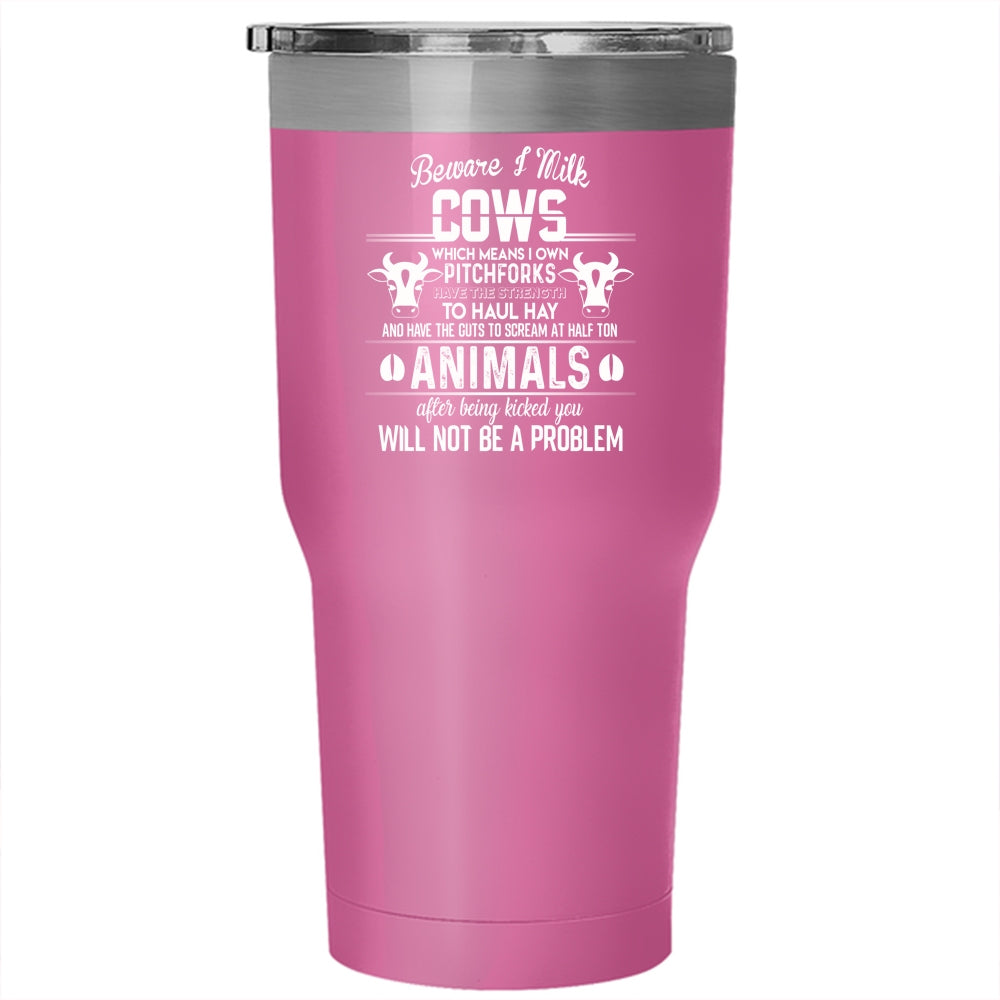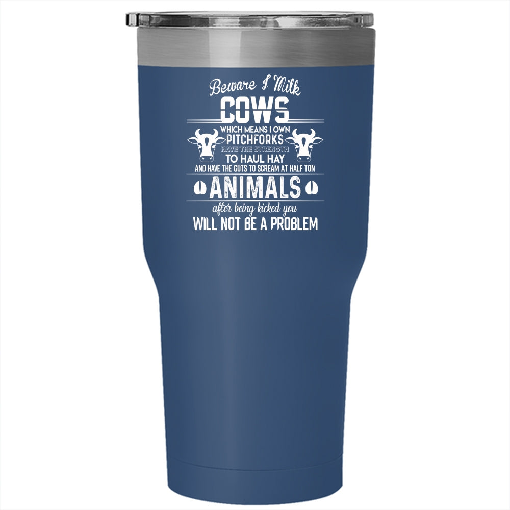 Beware I Milk Cows Tumbler 30 oz Stainless Steel, I Own Pitchforks Travel Mug