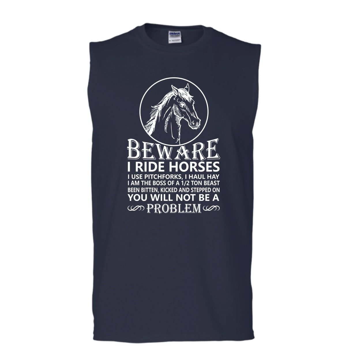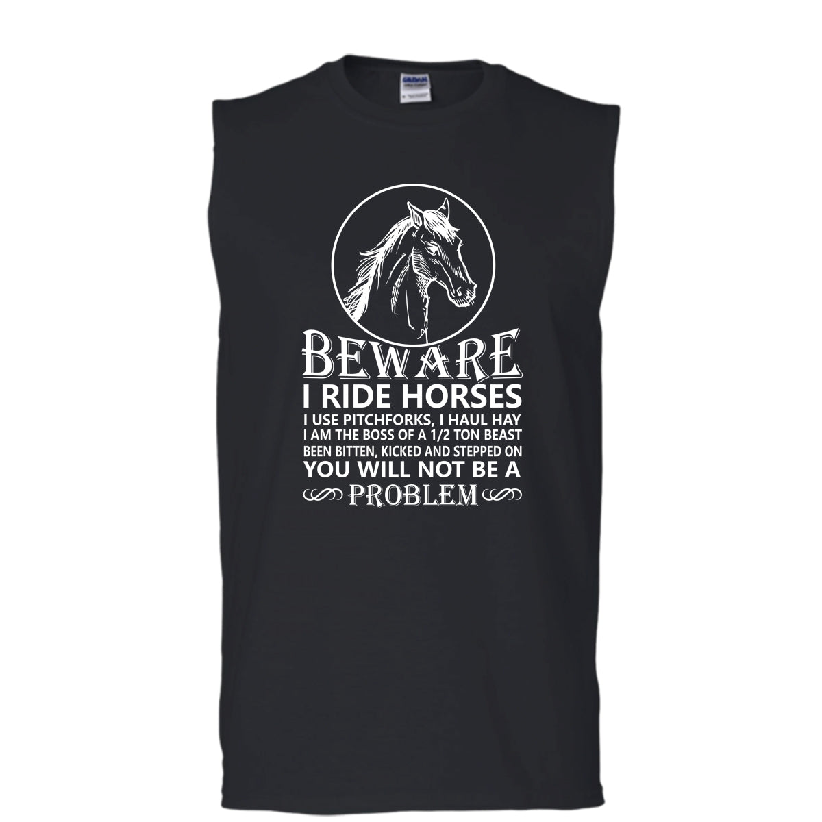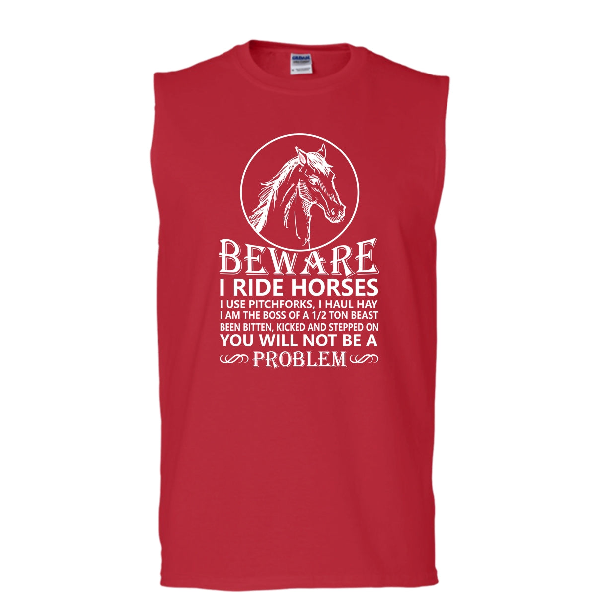 Beware I Ride Horse Shirt, I Use Pitchforks Shirt (Men's Cotton Sleeveless)