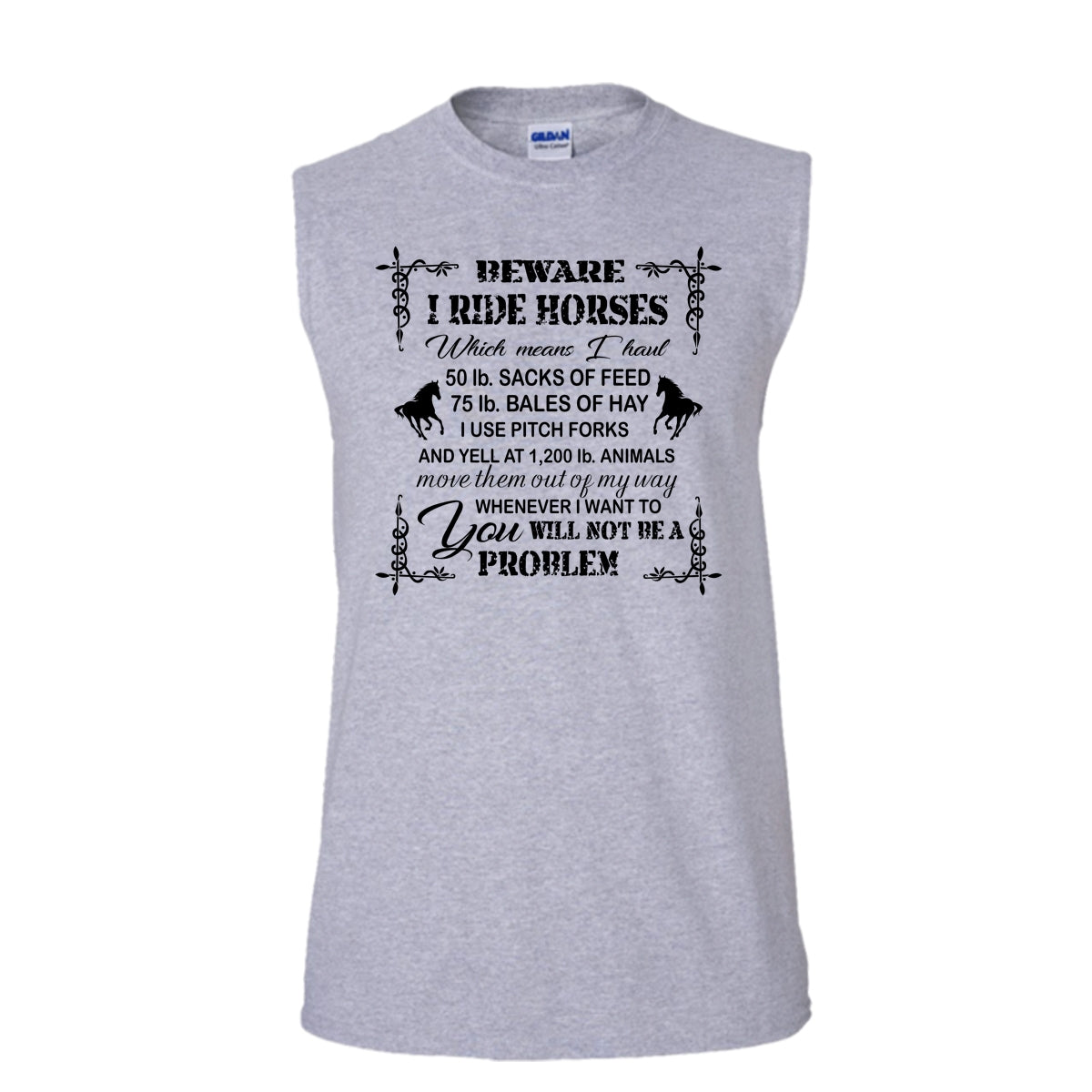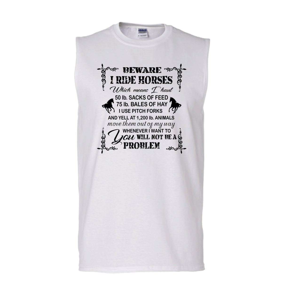 Beware I Ride Horse Shirt, You Will Not be A Problem Shirt, Cool Rider Shirt (Men's Cotton Sleeveless)
