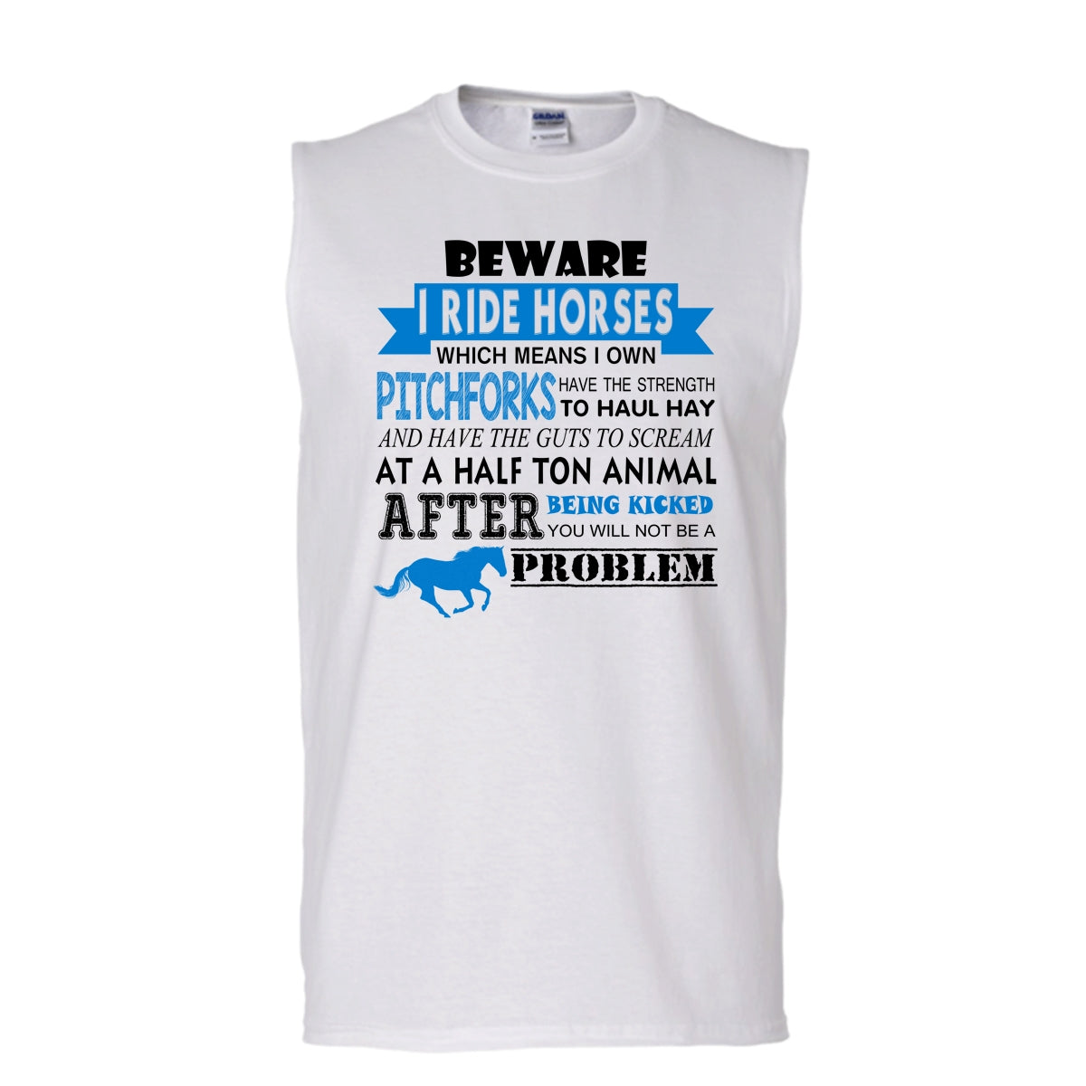 Beware I Ride Horses Shirt, I'm An Equestrian Shirt (Men's Cotton Sleeveless)