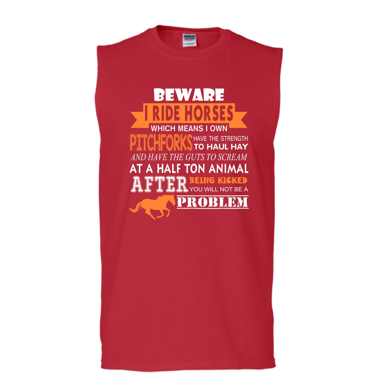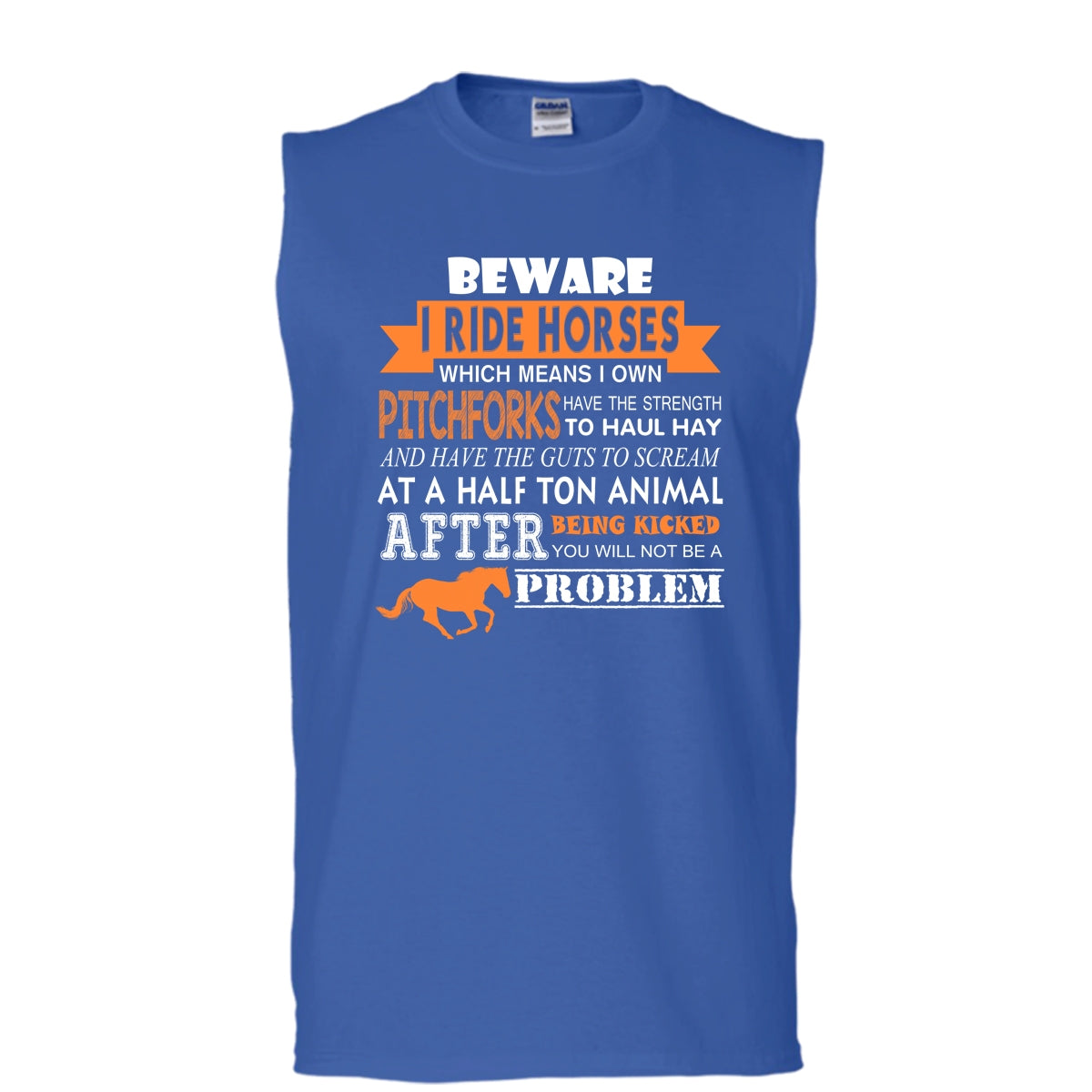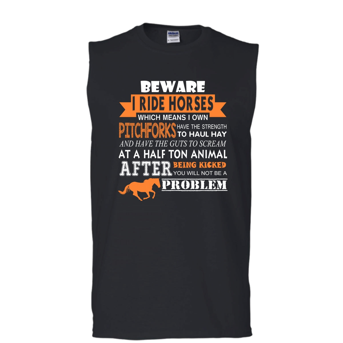 Beware I Ride Horses Shirt, Which Means I Own Pitchforks Shirt (Men's Cotton Sleeveless)