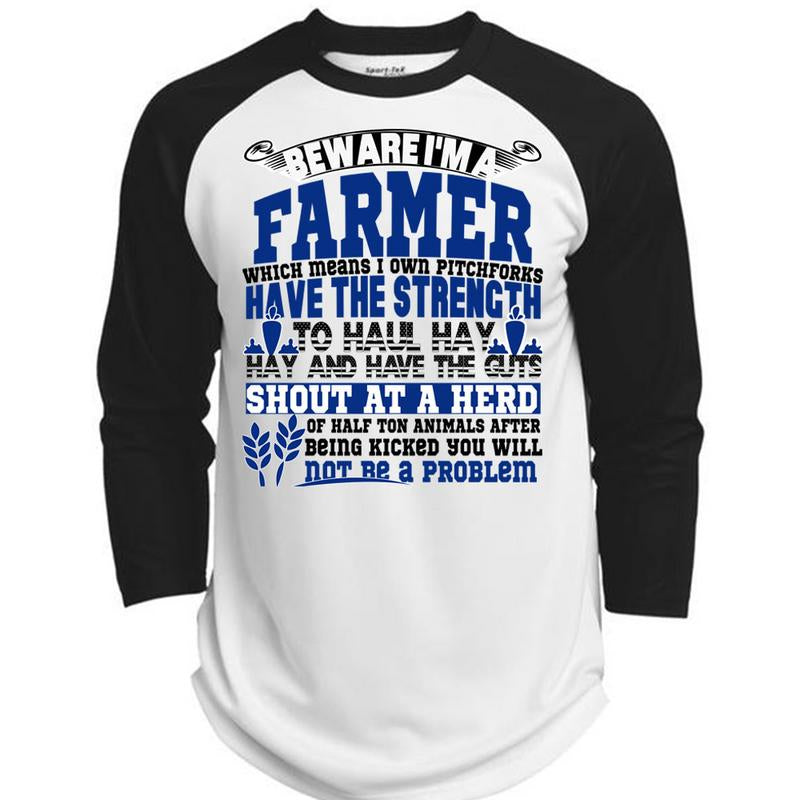 Beware I'm Farmer T Shirt, I Love Farming T Shirt, Awesome T-Shirts (Polyester Game Baseball Jersey)