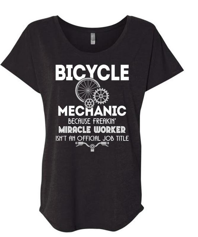 Bicycle Mechanic Because Freaking Miracle Worker T Shirt, Being A Mechanic T Shirt, Cool Shirt (Ladies' Triblend Dolman Sleeve)