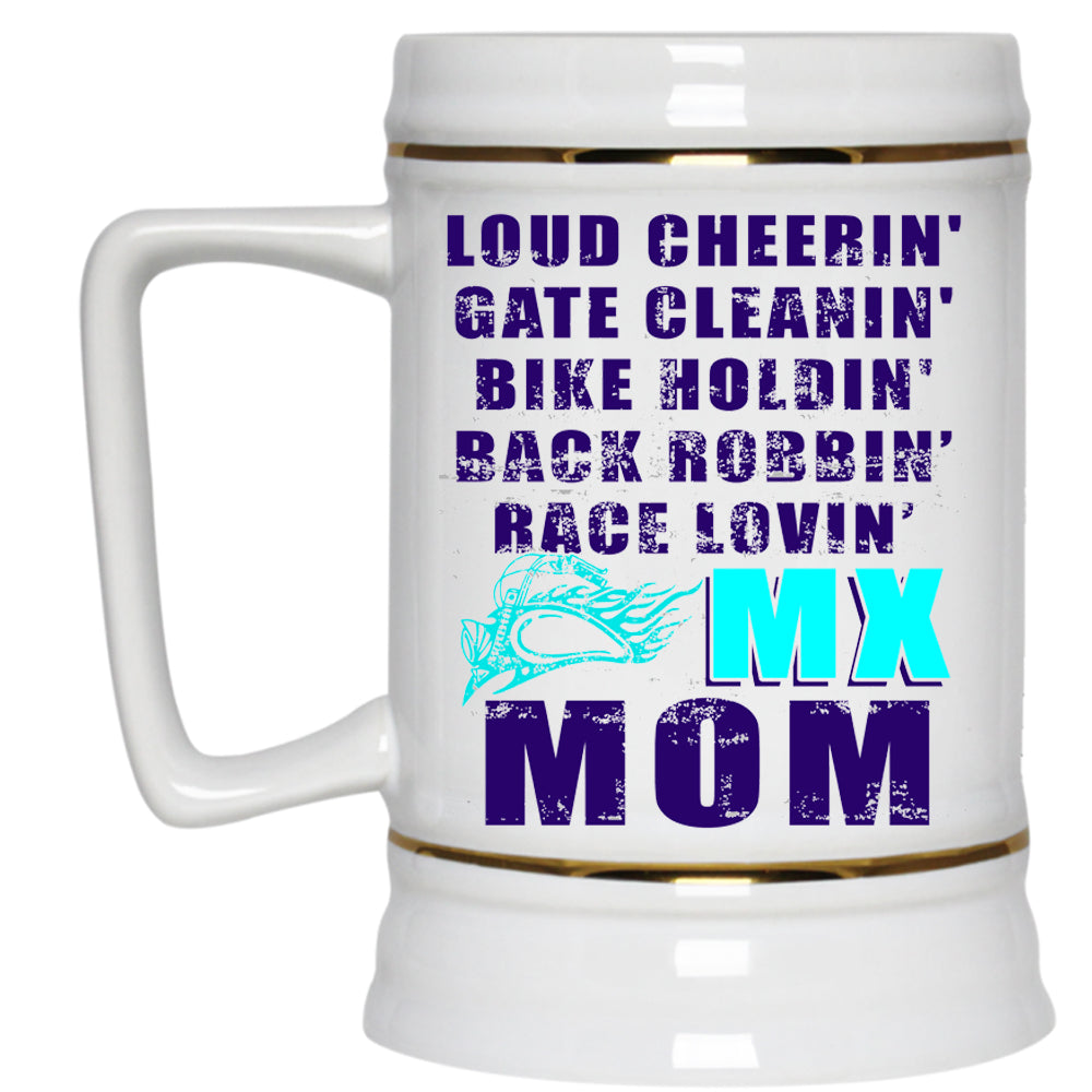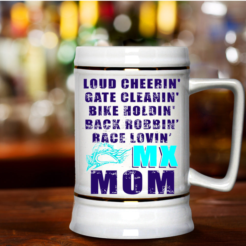 Bike Holding Race Loving Beer Stein 22oz, Loud Cheering Gate Cleaning Beer Mug