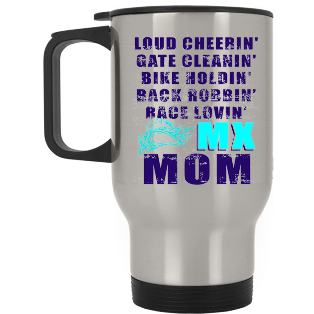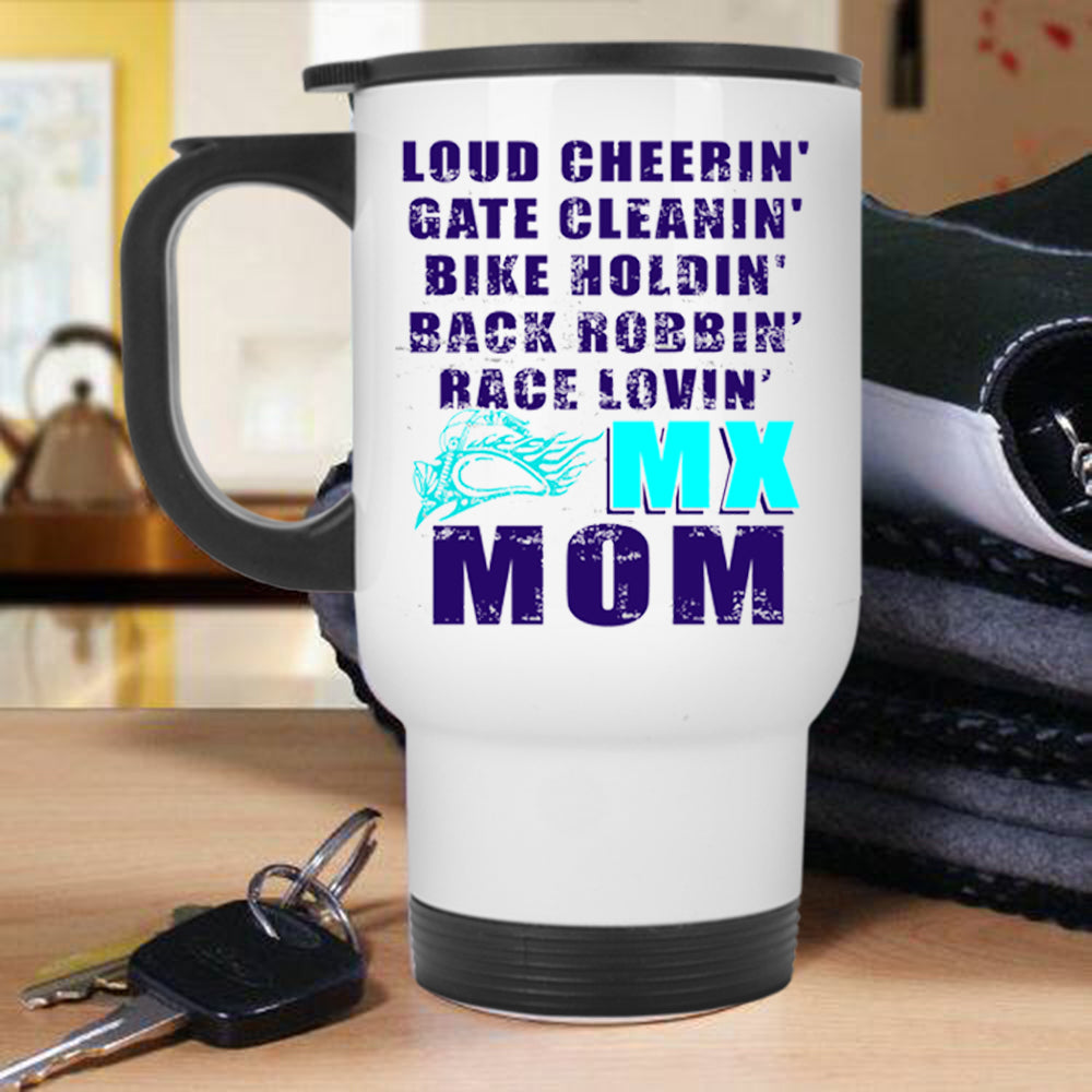 Bike Holding Race Loving Travel Mug, Loud Cheering Gate Cleaning Mug