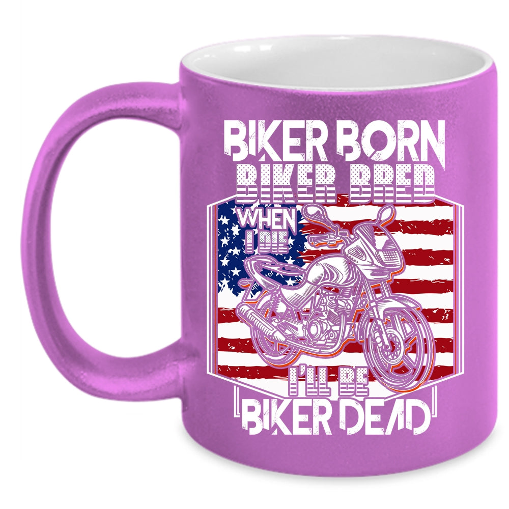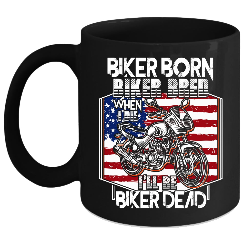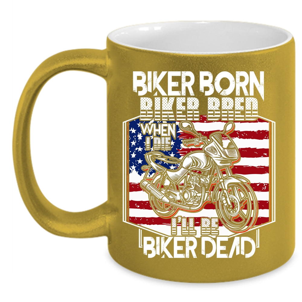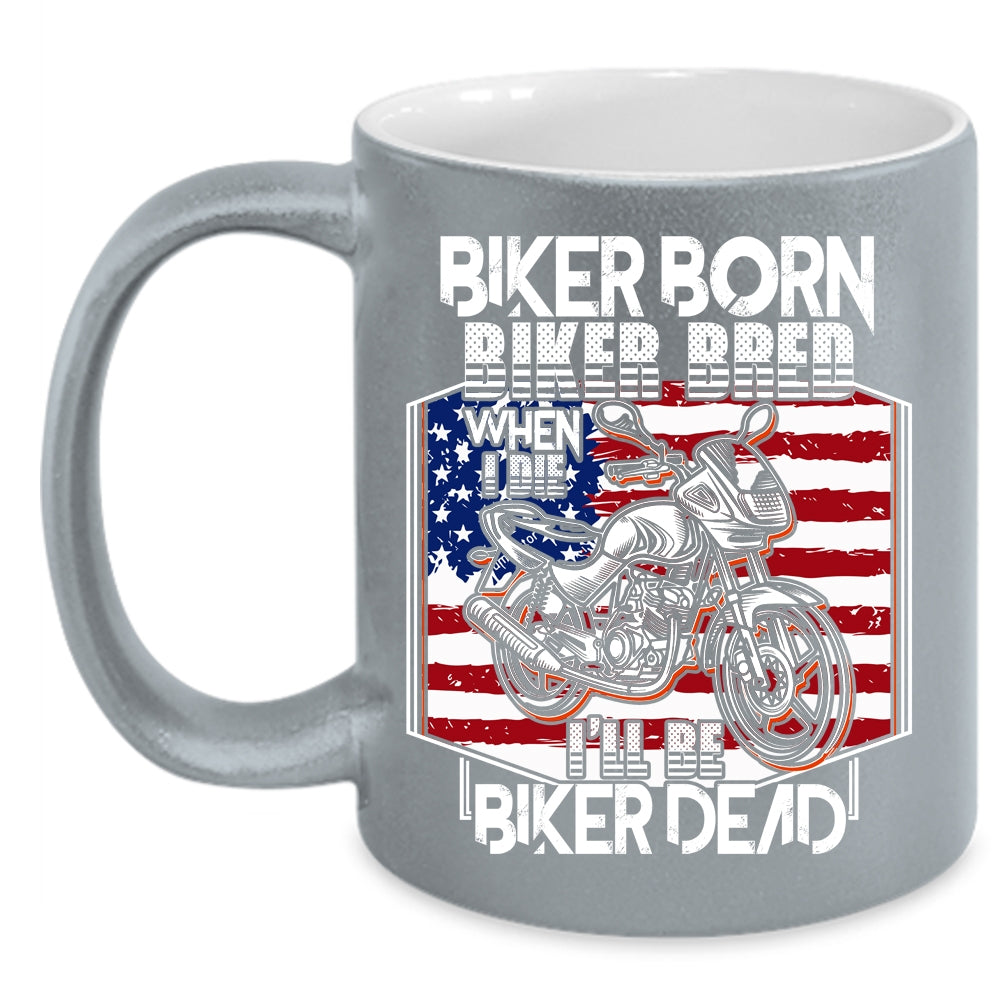 Biker Born Biker Bred Coffee Mug, Cool American Flag Coffee Cup