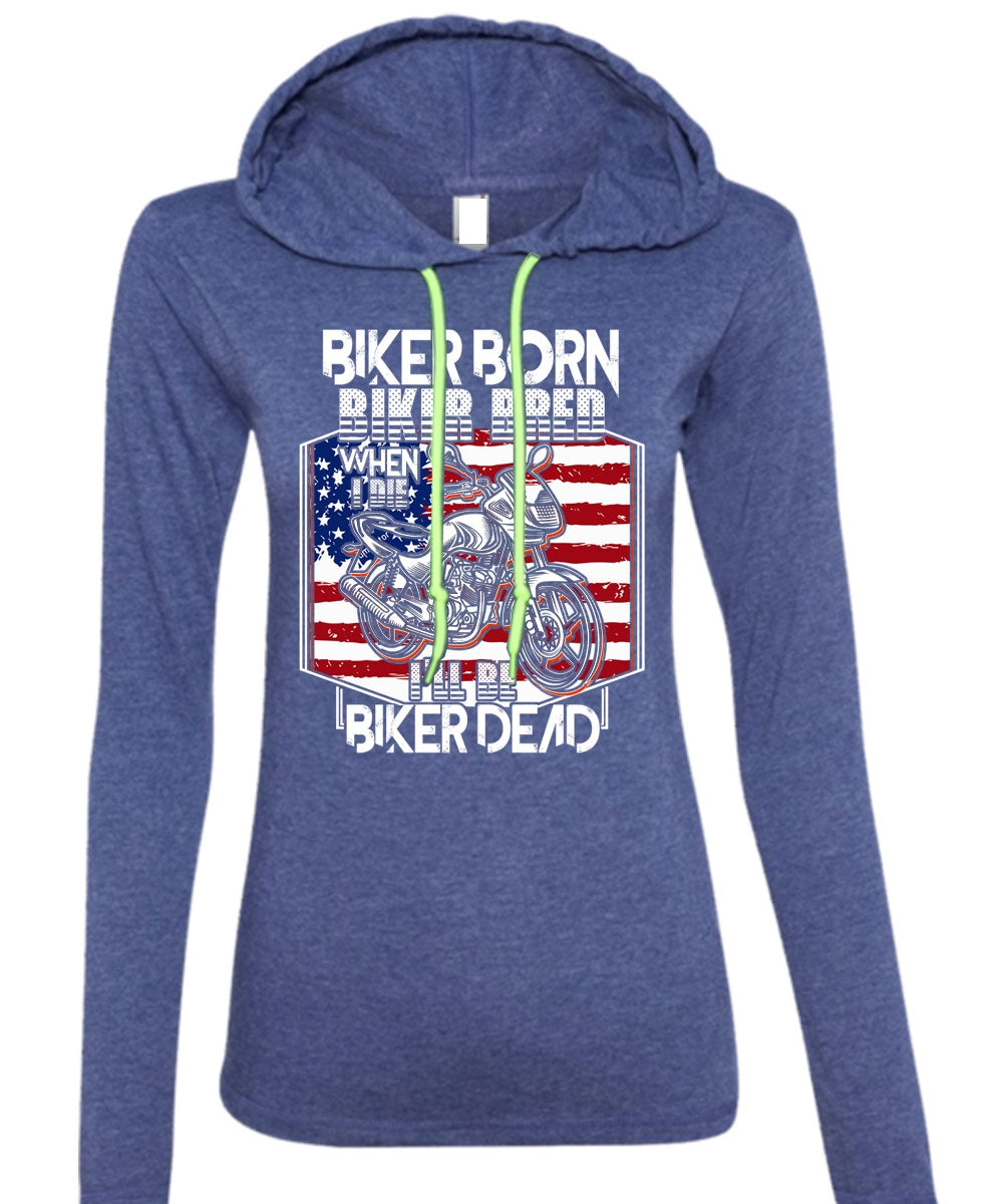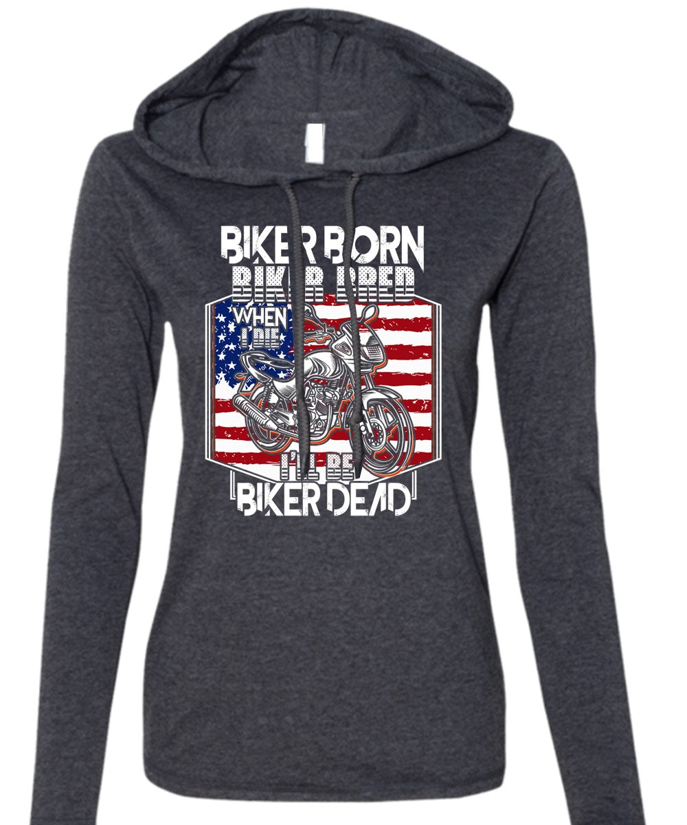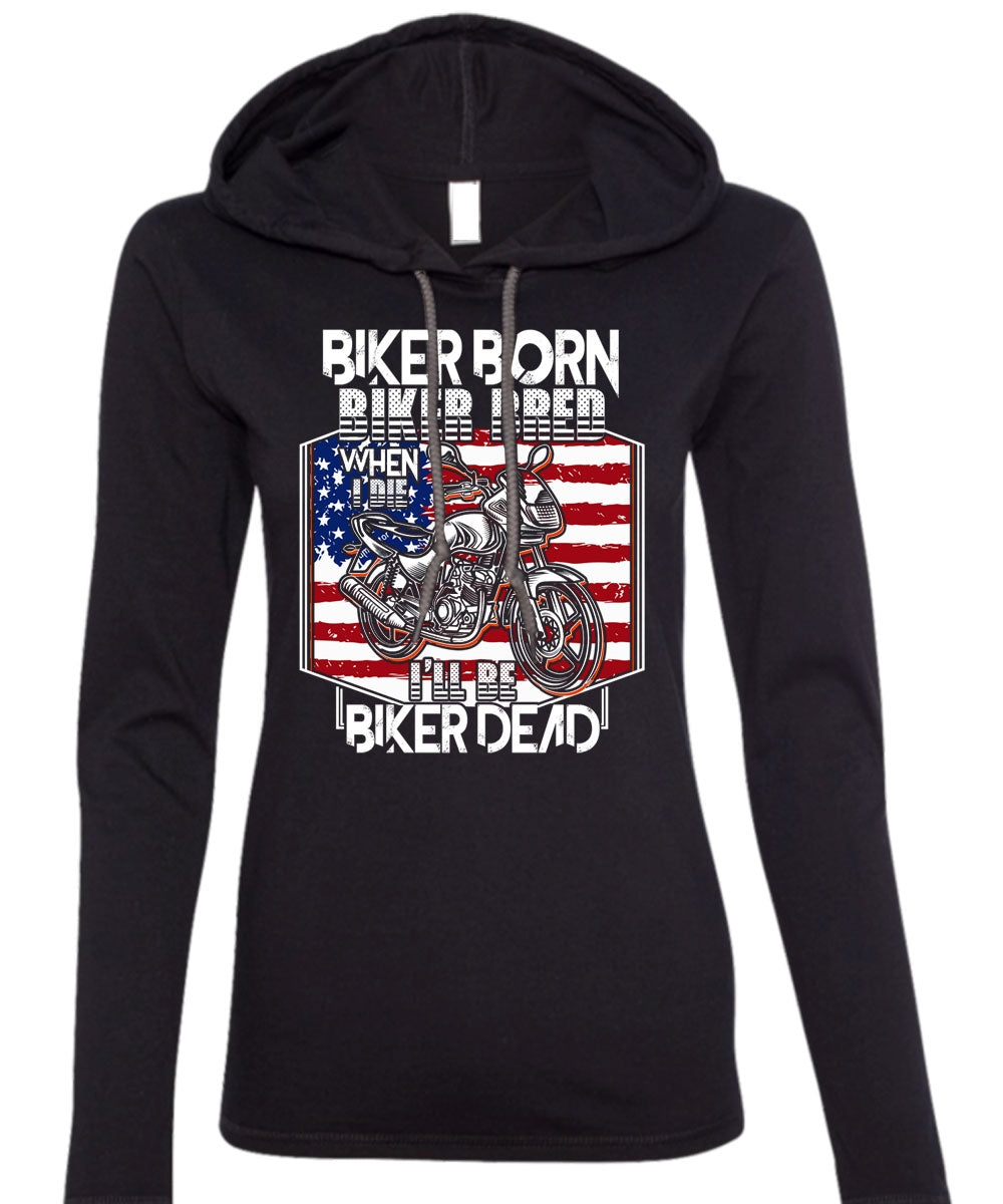 Biker Born Biker Bred T Shirt, I'll Be Biker Dead T Shirt (Anvil Ladies Ringspun Hooded)