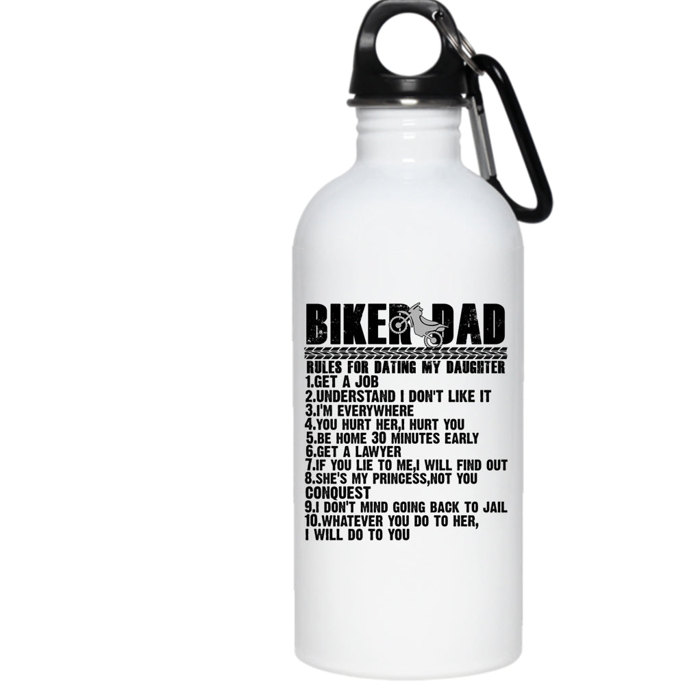 Biker Dad Rules For Dating My Daughter 20 oz Stainless Steel Bottle,Cool Biker Dad Outdoor Sports Water Bottle