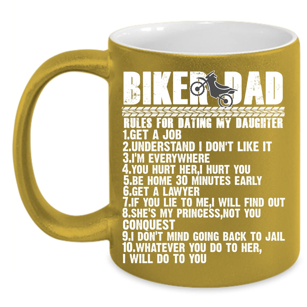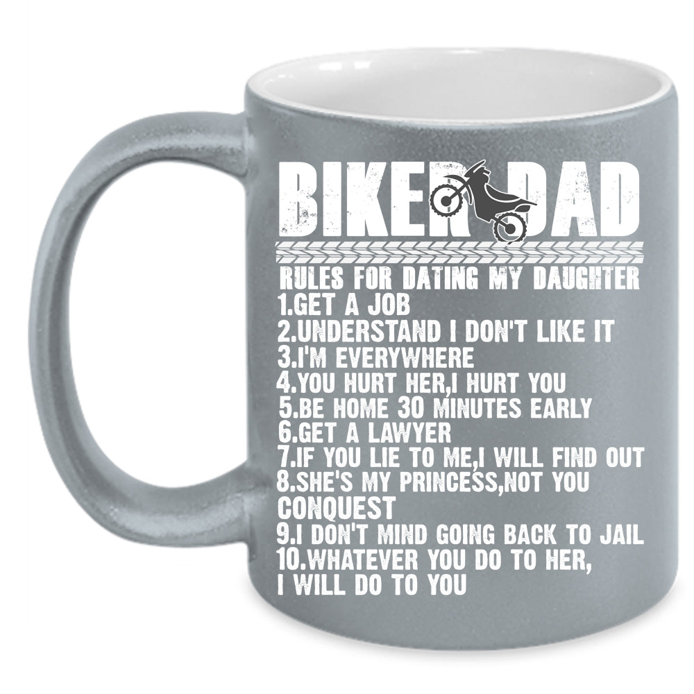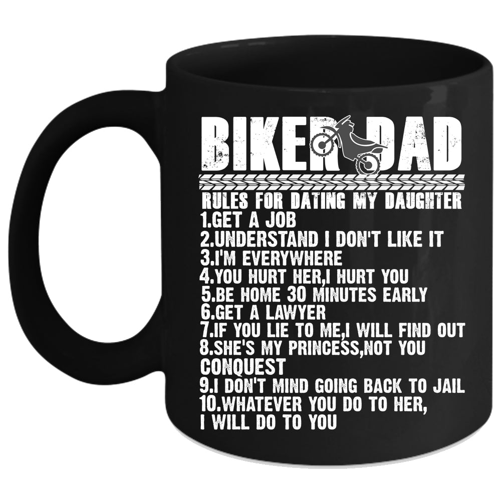 Biker Dad Rules For Dating My Daughter Coffee Mug, Cool Biker Dad Coffee Cup