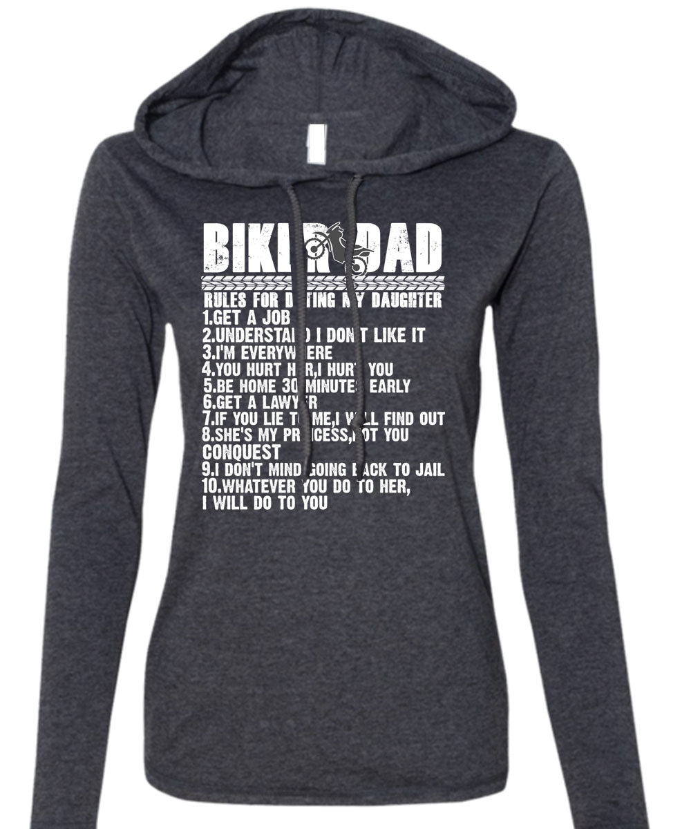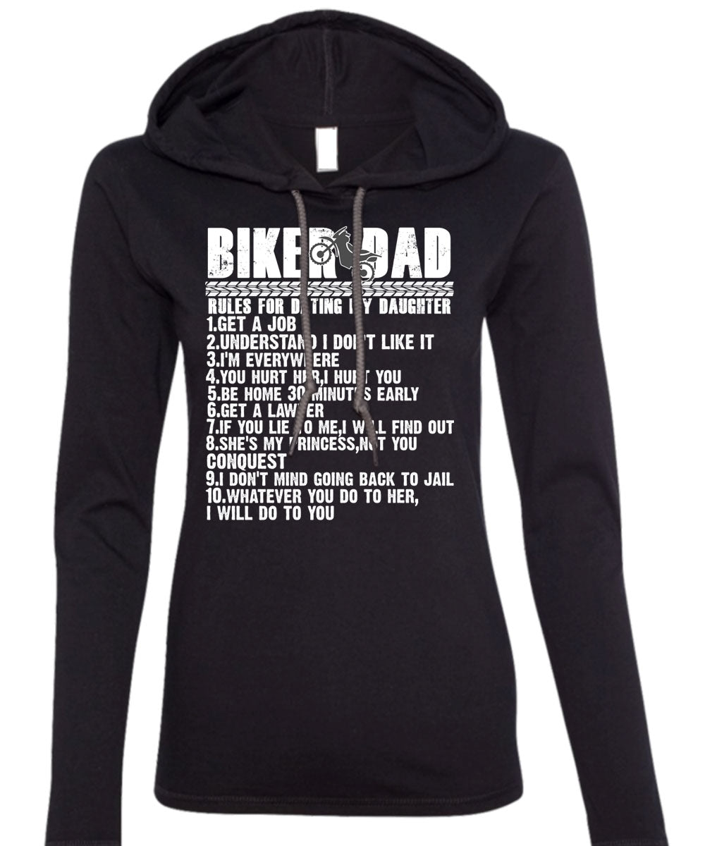 Biker Dad Rules For Dating My Daughter T Shirt, Being A Biker T Shirt (Anvil Ladies Ringspun Hooded)